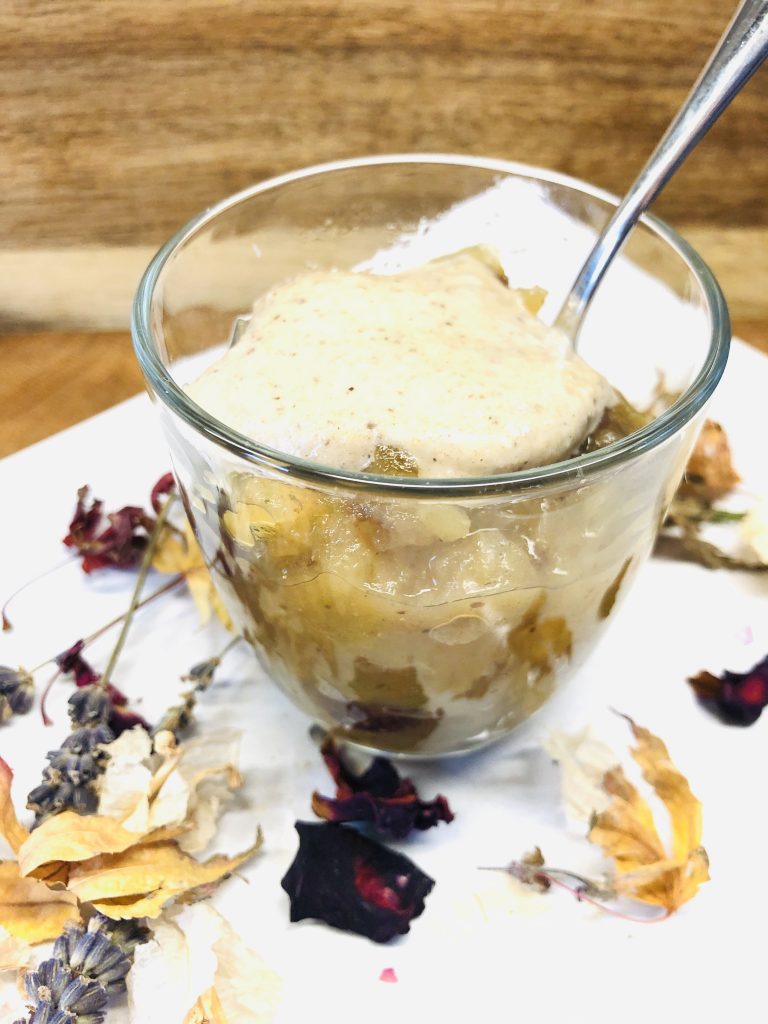 Aber auch als Dessert eignet sich das Apfel Relish, z.B. mit Dattel Marzipan Sauce.