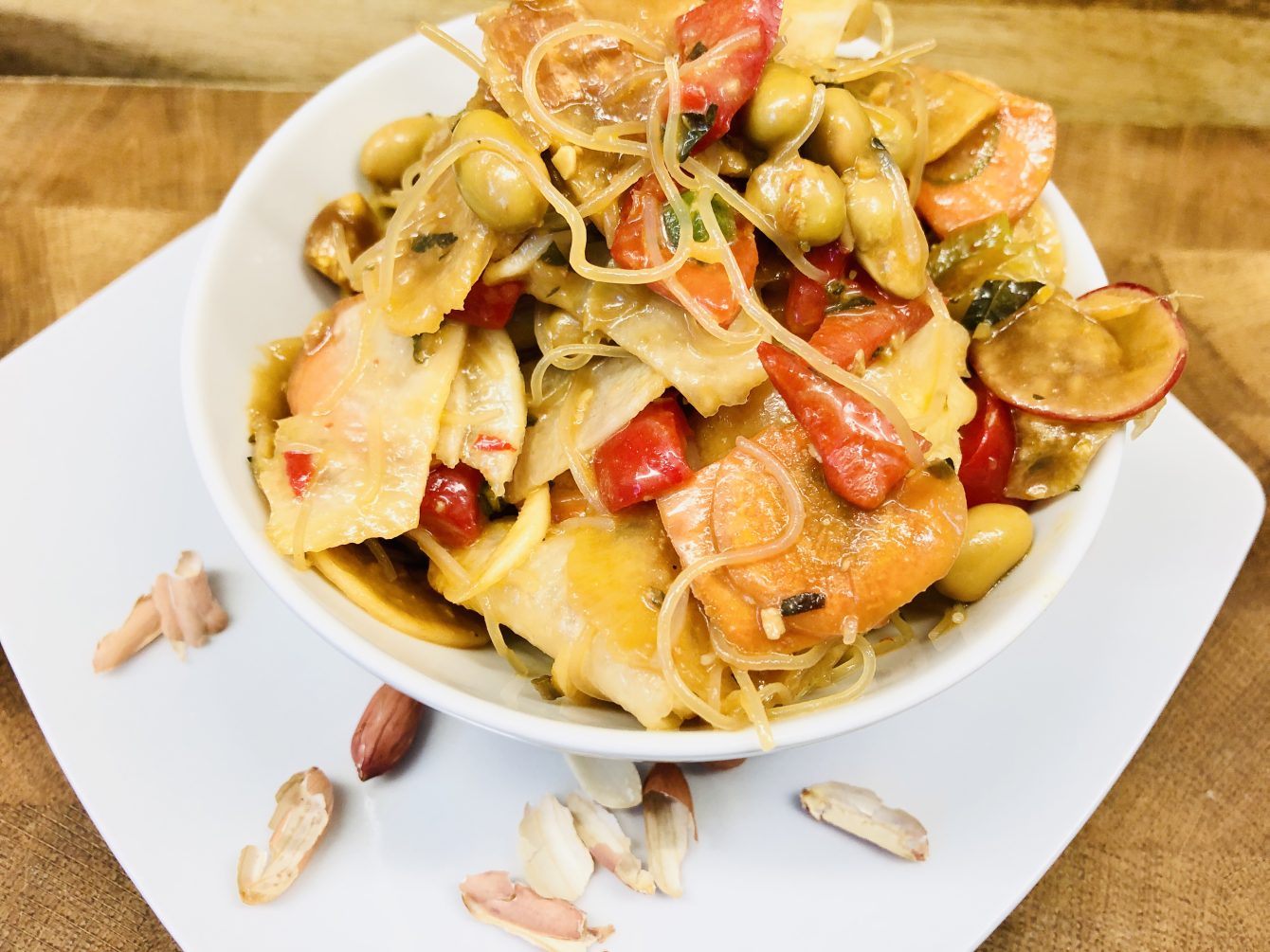 - Alles kombinieren: Die vorbereiteten Glasnudeln mit dem geschnittenen Gemüse in eine große Schüssel geben. Das Dressing darüber gießen und alles gut vermengen, damit sich die Aromen verbinden.