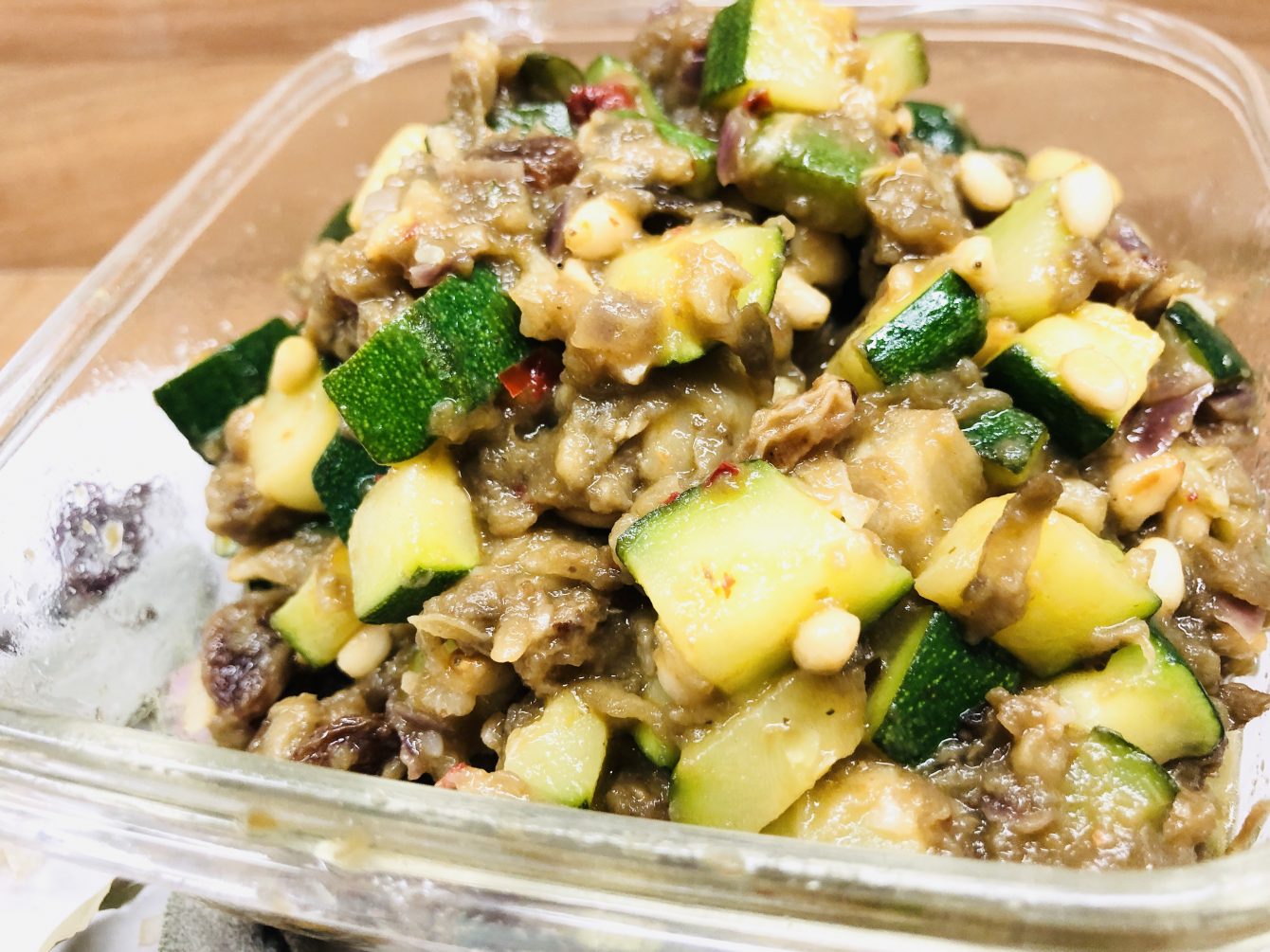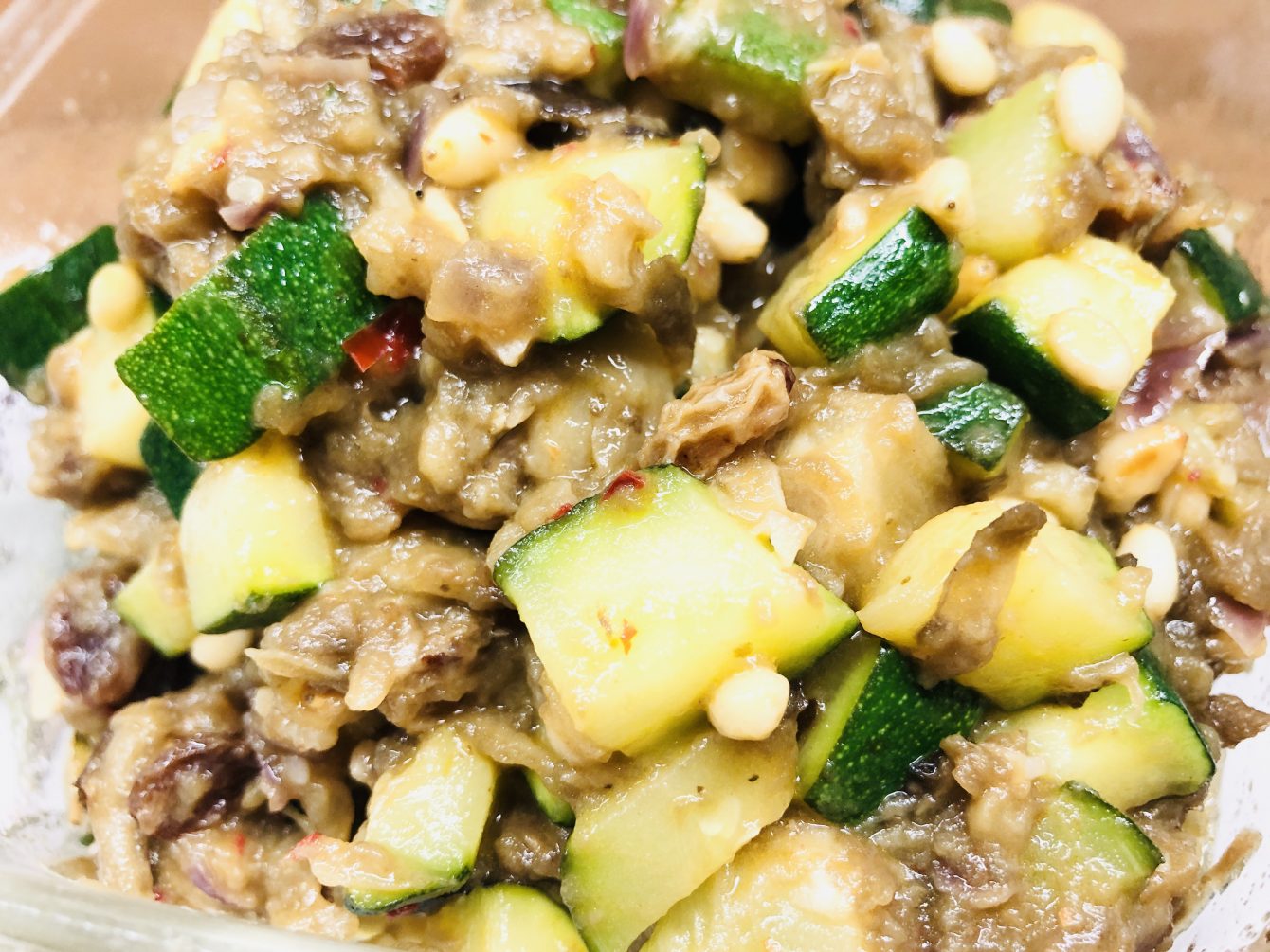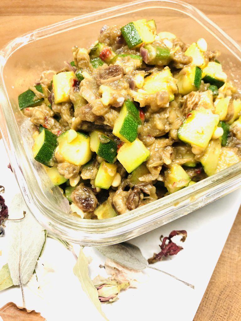 Dieses Auberginen Gemüse mit Rosinen und Pinienkernen sind ein tolles Sommergericht aus der italienischen Küche.