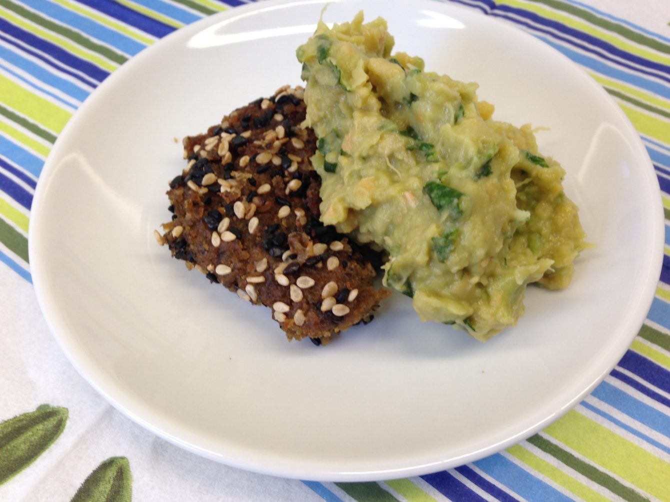 Gefunden habe ich dieses Rezept als Avocado Chickpea Toast auf Meme’s Livingwell Kitchen Blog. Bei mir gibt es allerdings keinen Toast dazu, sondern Hirse Kichererbsen Falafel, von denen ich noch ein paar übrig hatte.