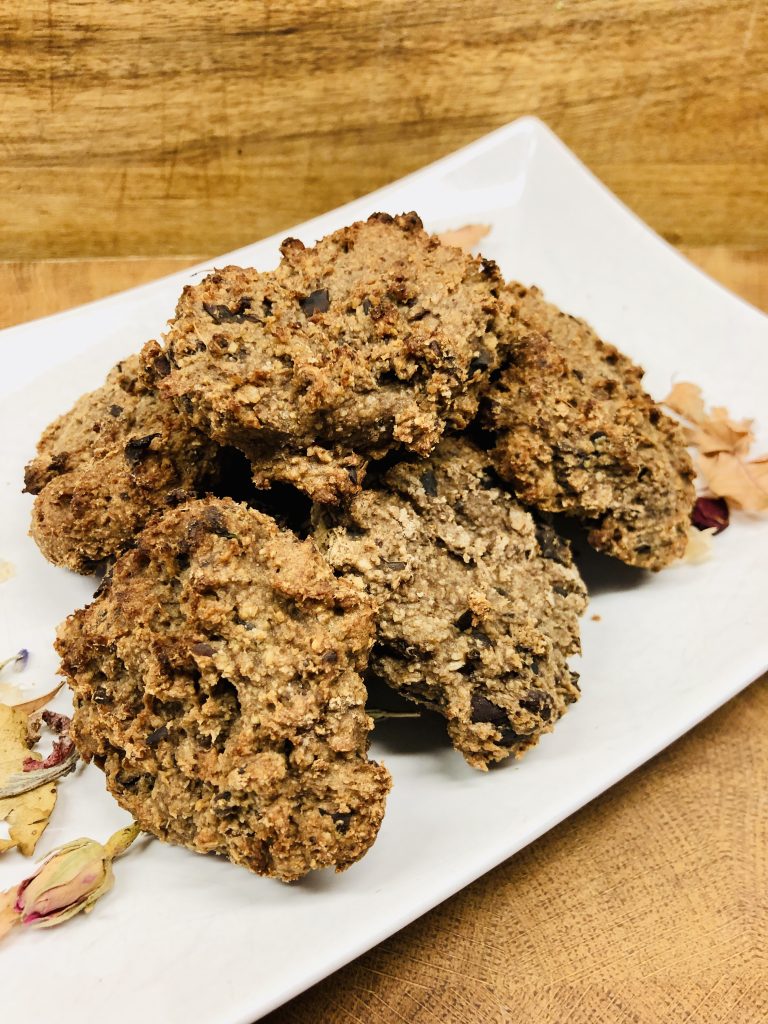 Diese Bananen-Brötchen mit Kokos und Chocolate Chips bestehen aus Hafermehl, Kokosmus und Kokosraspeln, Datteln, Ingwer und Gewürzen. Sie sind vegan und glutenfrei.