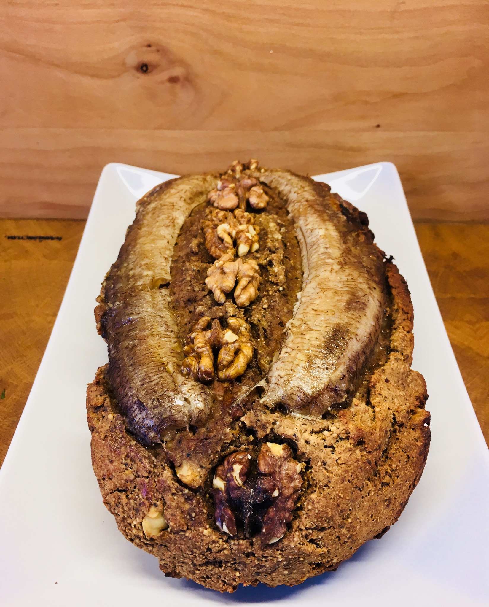 Das Bananenbrot ergibt ein leckeres Frühstücksbrot oder auch einen leckeren Kuchen. Probiert es mit Mandelmus, Orangen Marmelade oder Bananen Tahini als Brotaufstrich