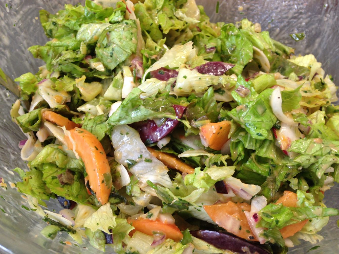 Alle Zutaten in einer Schüssel zusammenmischen und mit der Vinaigrette vermischen.