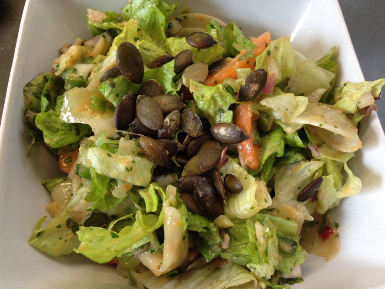 Kürbiskerne und Fetan darüberstreuen und servieren.
