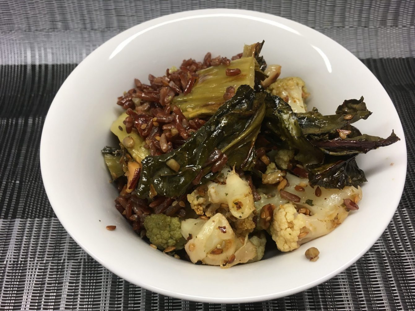 Zu diesem Salat hat mich das Rezept Roasted Cauliflower Salat with Miso Pear Dressing auf One Green Planet inspiriert. Ich habe das Rezept aber etwas verändert und ergänzt, u.a. durch Aprikosen und geröstete Kreuzkümmelsamen.