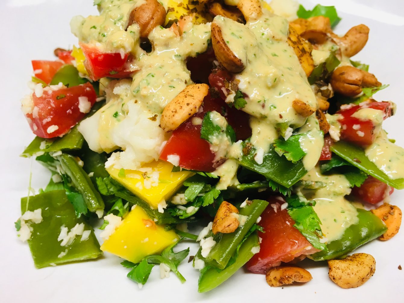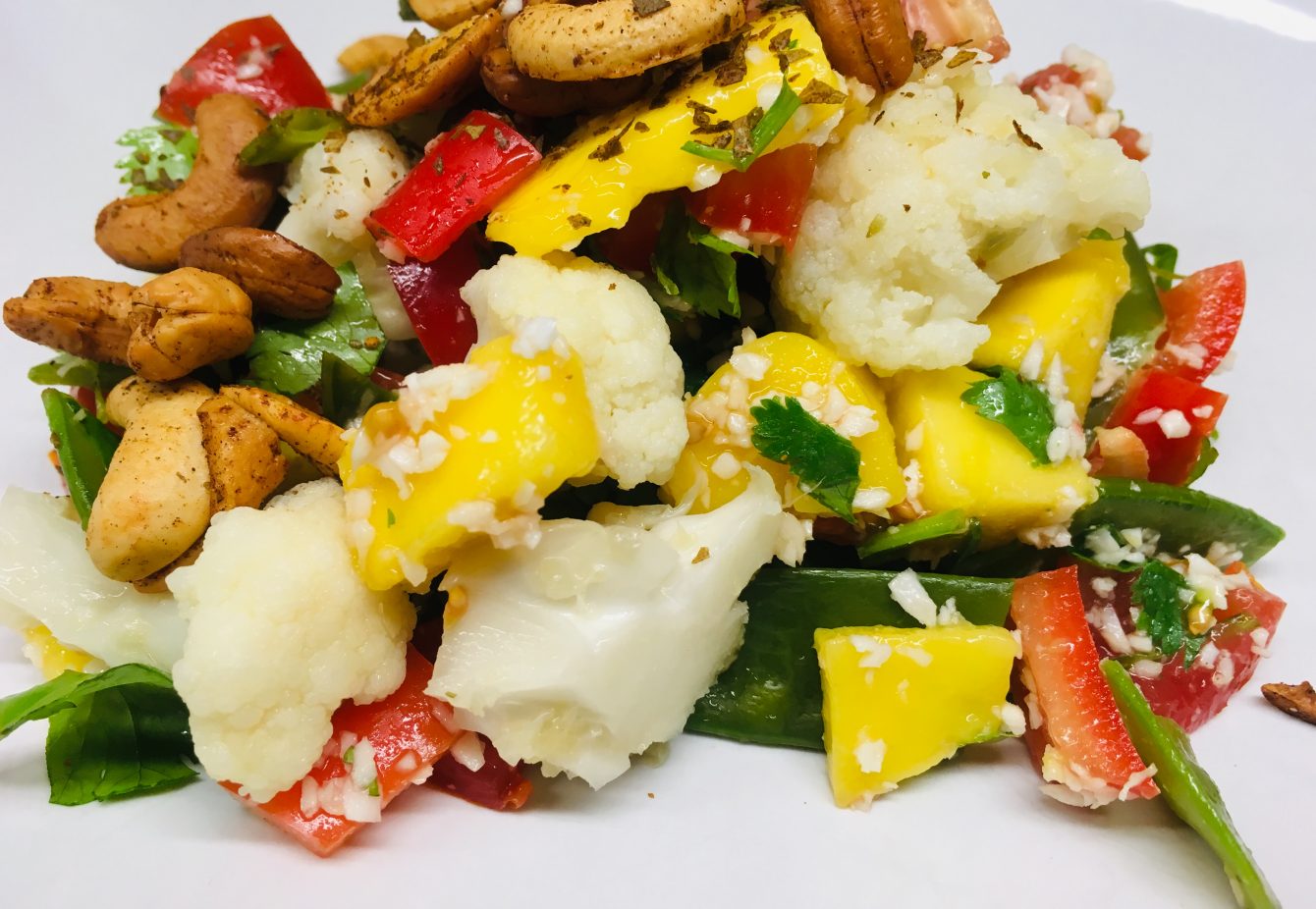 Blumenkohl Salat mit Mango, Kokos und Cashew Dressing