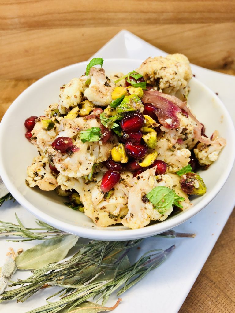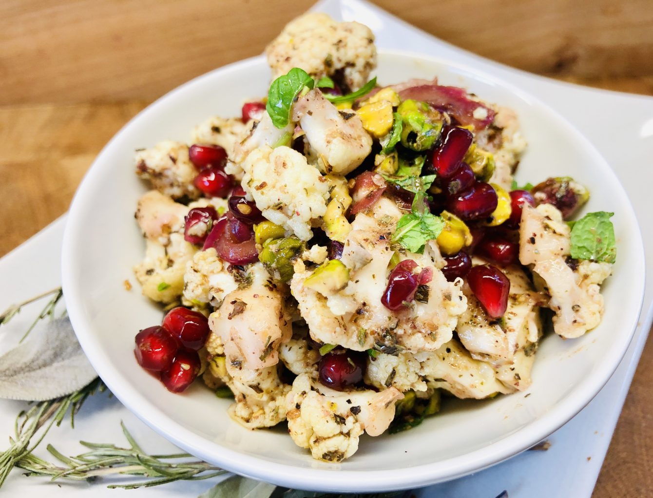 Blumenkohl Salat mit Pistazien und Granatapfelkernen