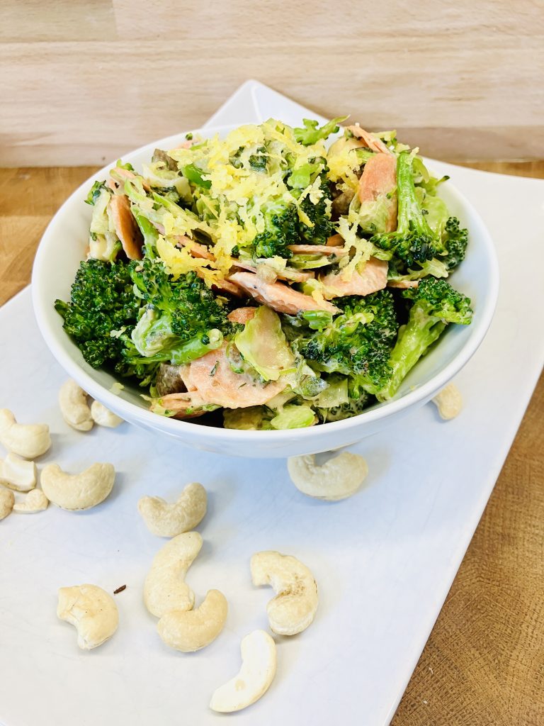 Brokkoli Karotten Salat mit cremigem Sesam Cashew Dressing