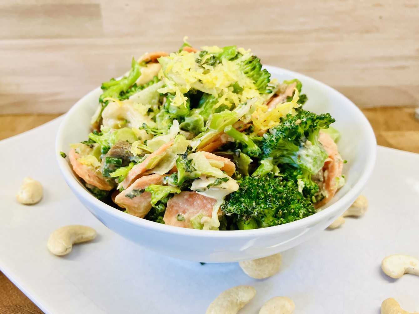 Das Rezept für den Brokkoli Karotten Salat mit Sesam Cashew Dressing