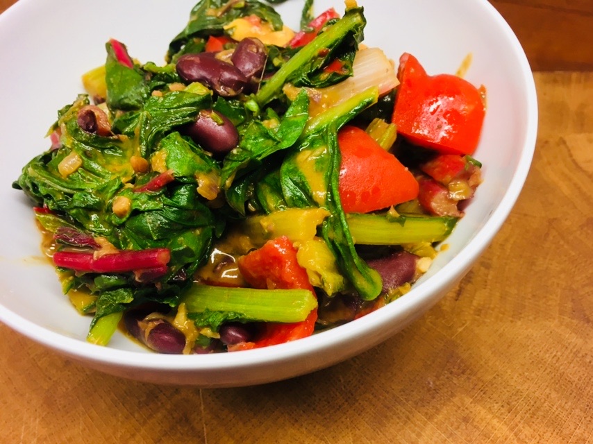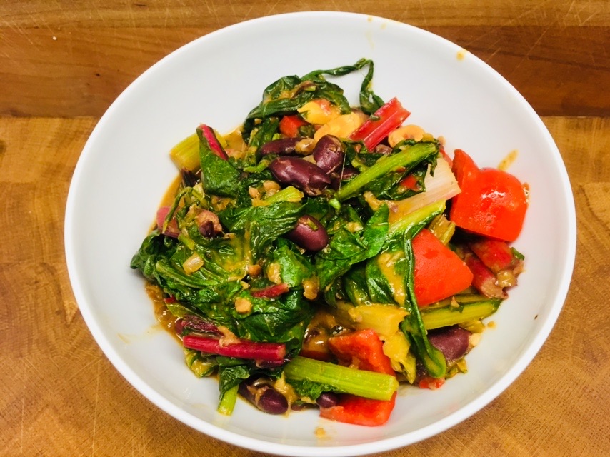 Das Rezept für den Mangold mit Kidney Bohnen, Paprika und Erdnüssen