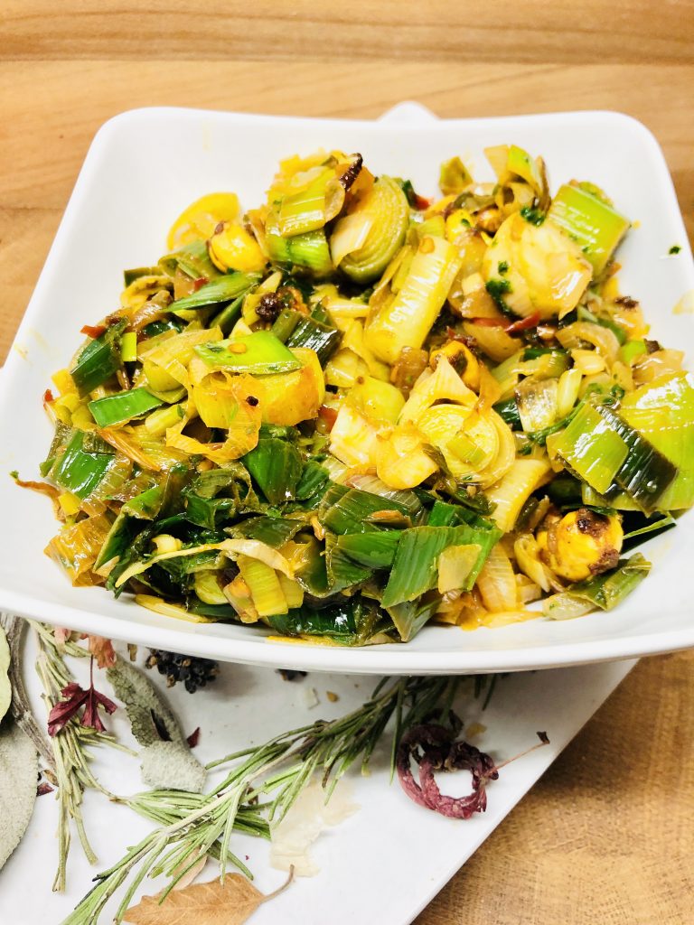 Lauch ist ein sehr vielseitiges Gemüse. Es lässt sich mit vielerlei Gemüse, Obst und Aromen zu köstlichen Gerichten kombinieren, vor allem mit Mango oder Apfel oder Kürbis und Maronen: