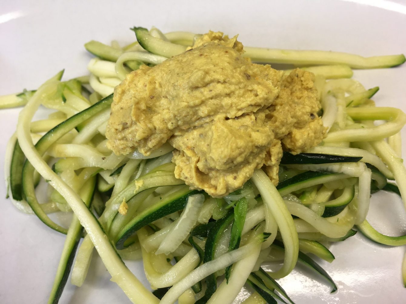 Die cremige Curry Sauce mit Tahini und Datteln passt zu Zucchini Pasta, aber auch zu jeder anderen Gemüse Pasta oder als Aufstrich, Dip oder Dressing für Salate.
