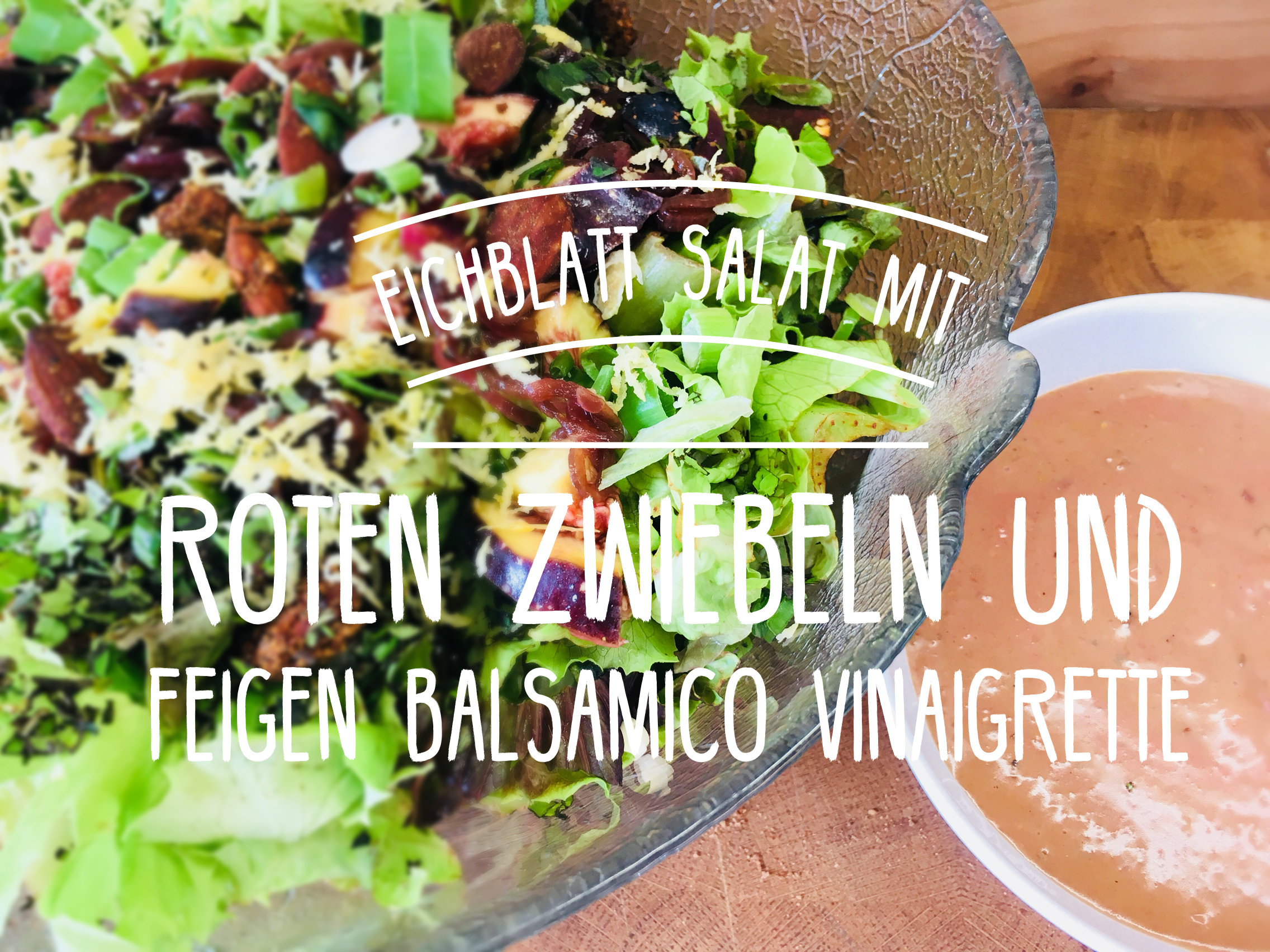 Eichblatt Salat mit roten Zwiebeln und Feigen Balsamico Vinaigrette