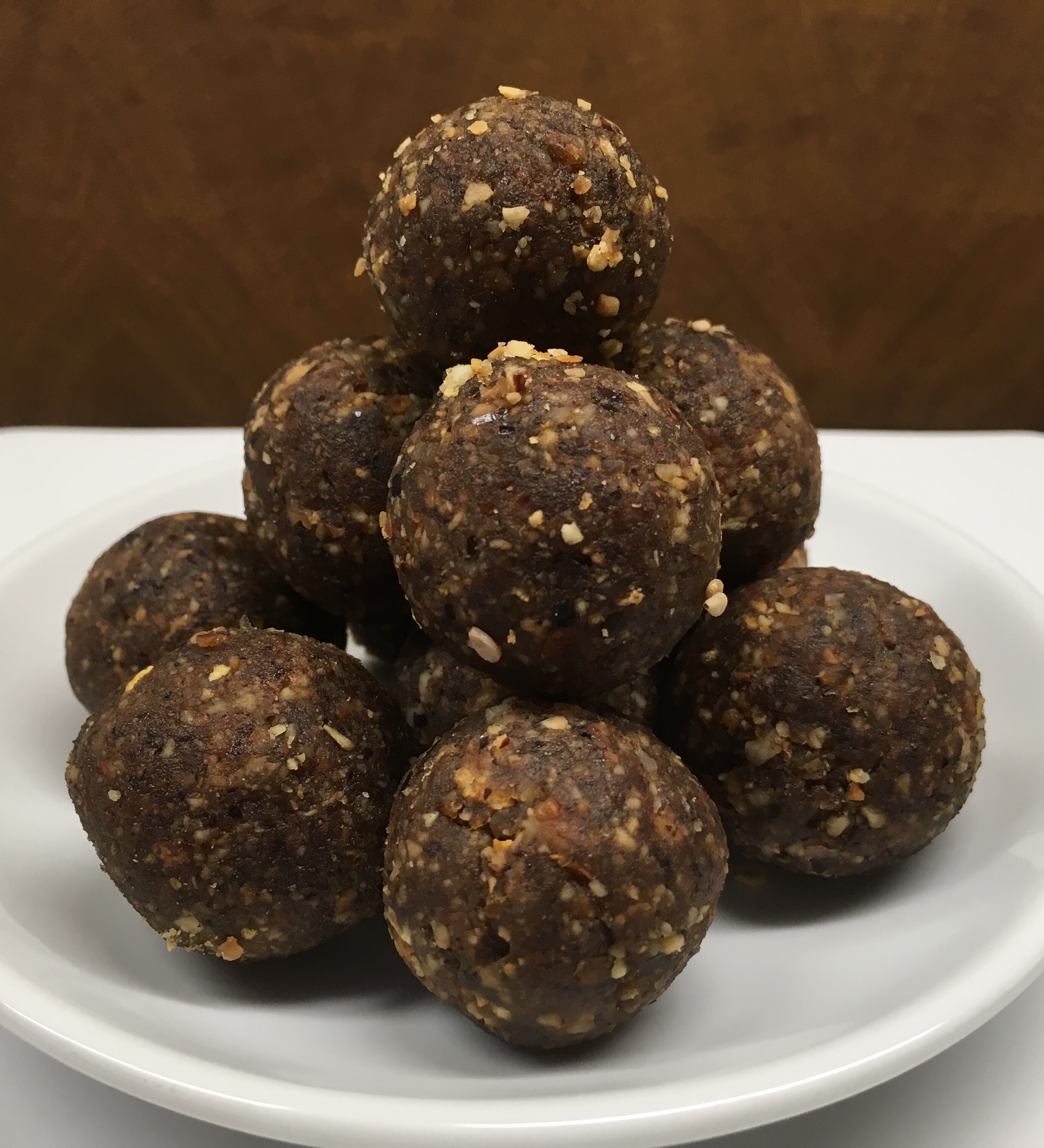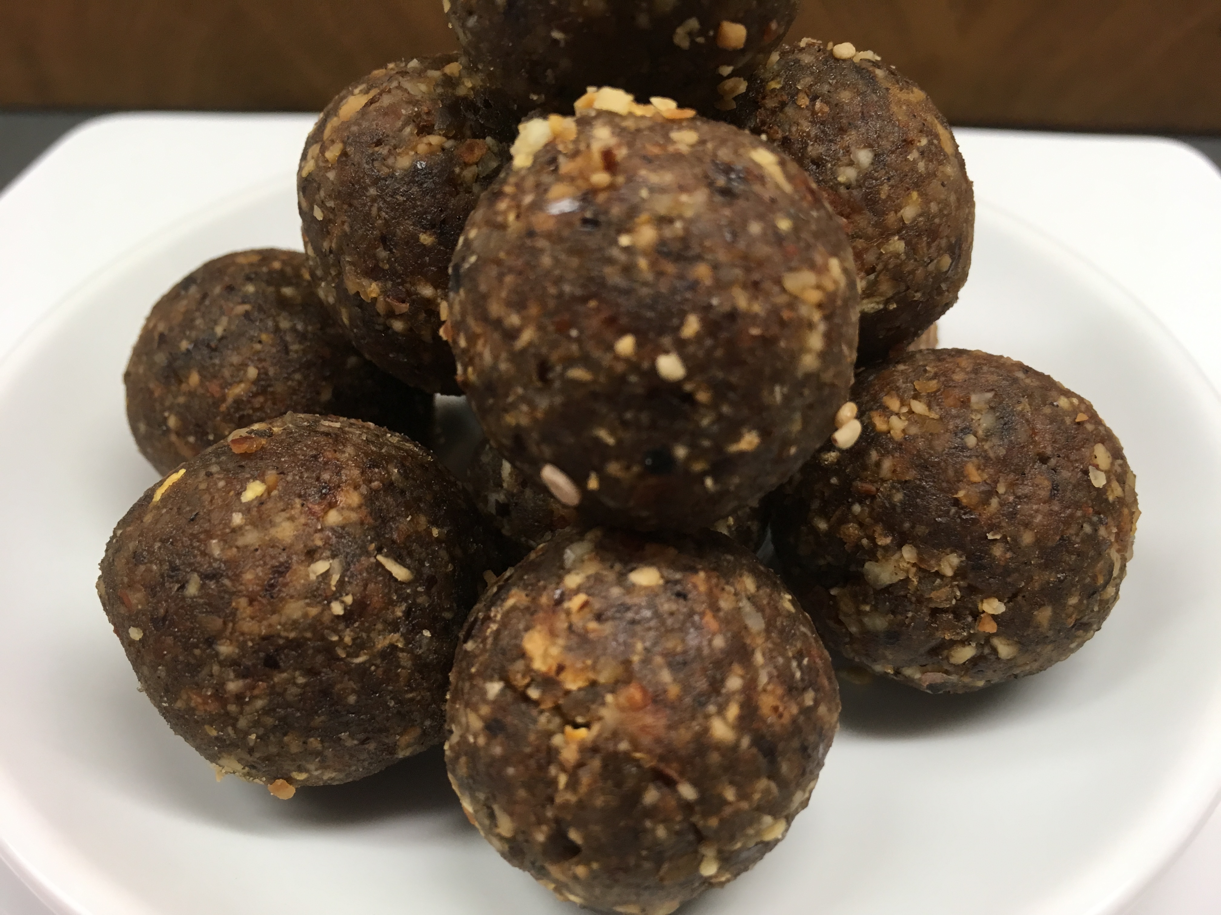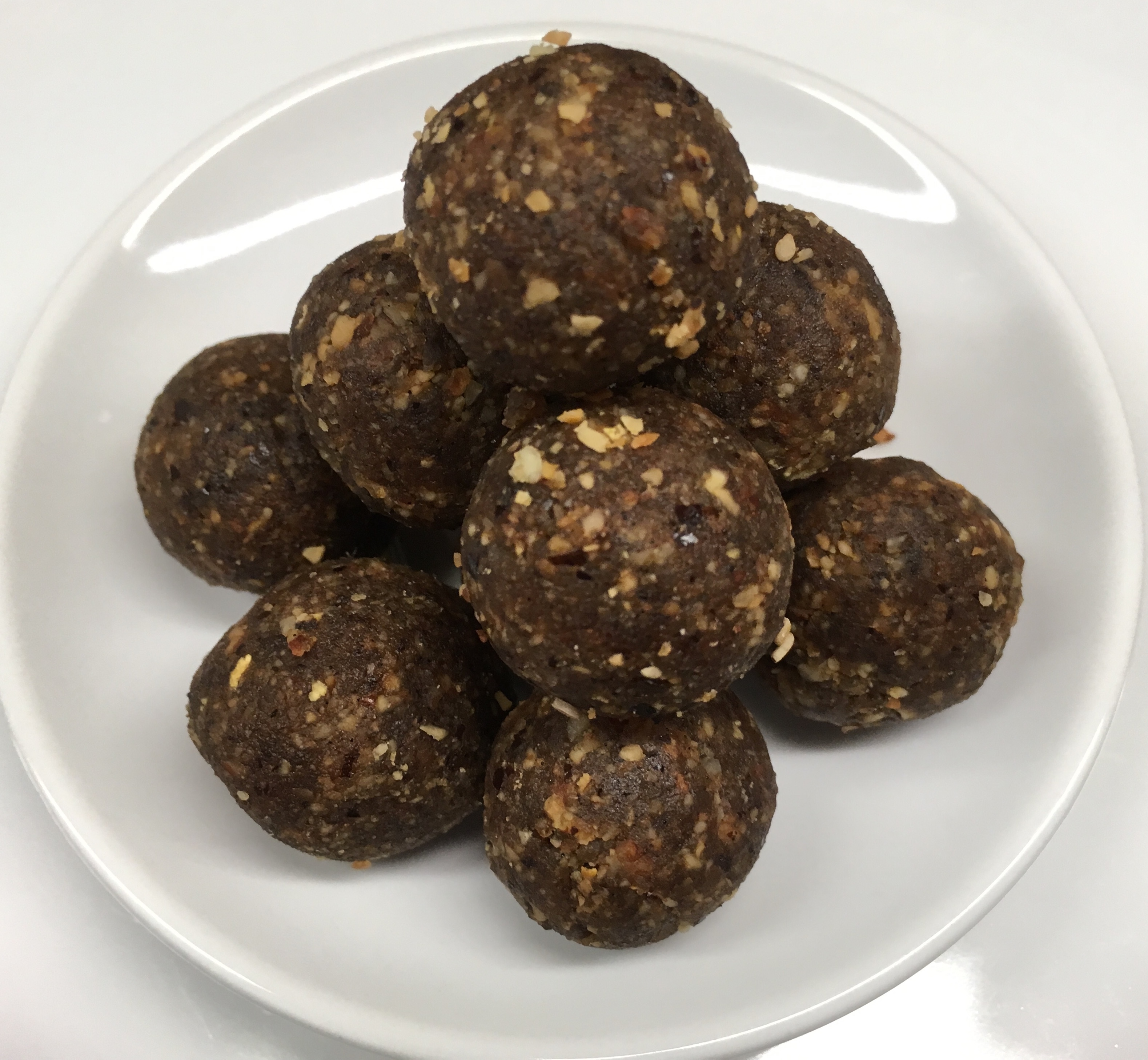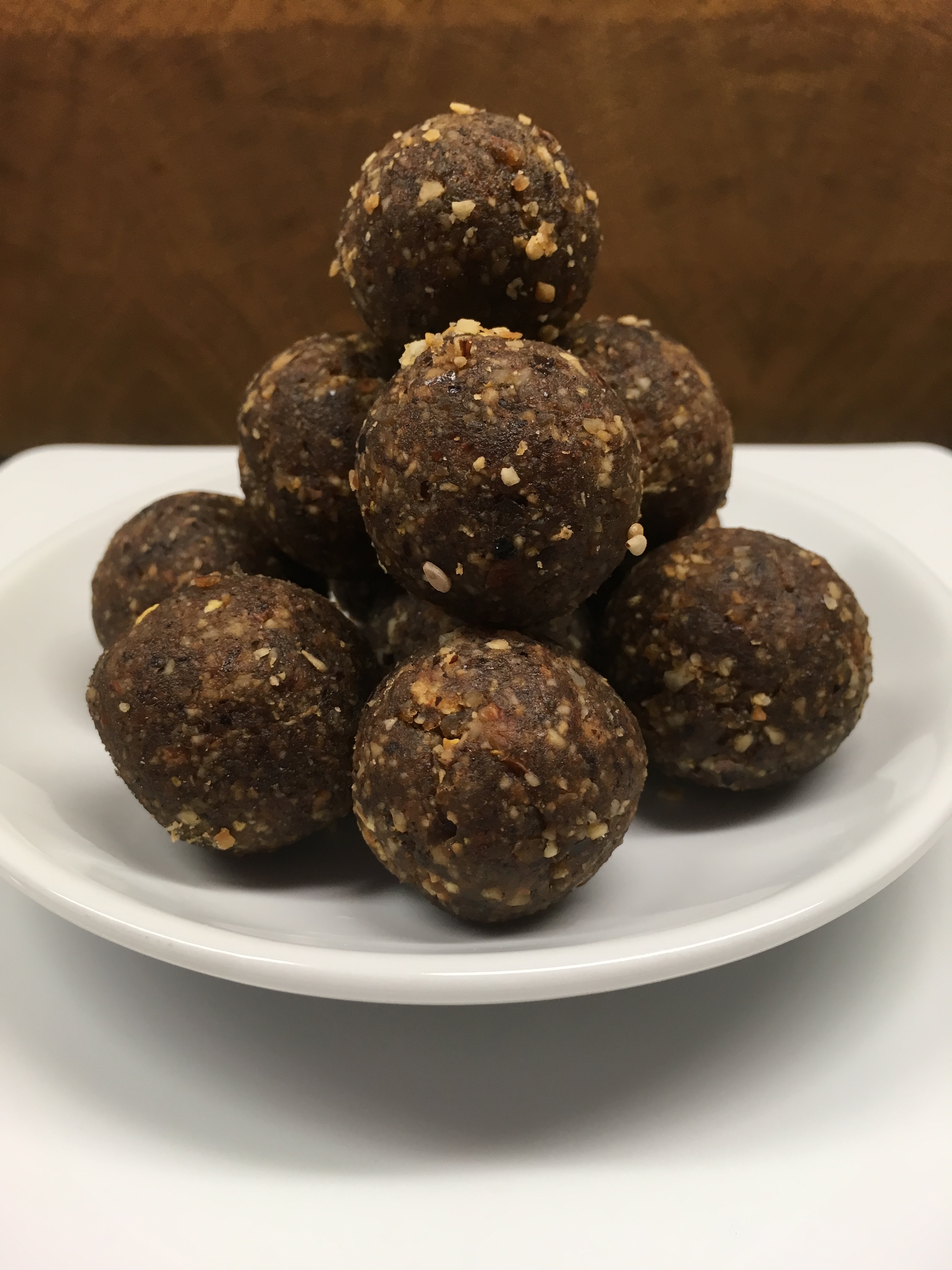 - Energiebällchen aus Dattel Karamell mit Haselnüssen