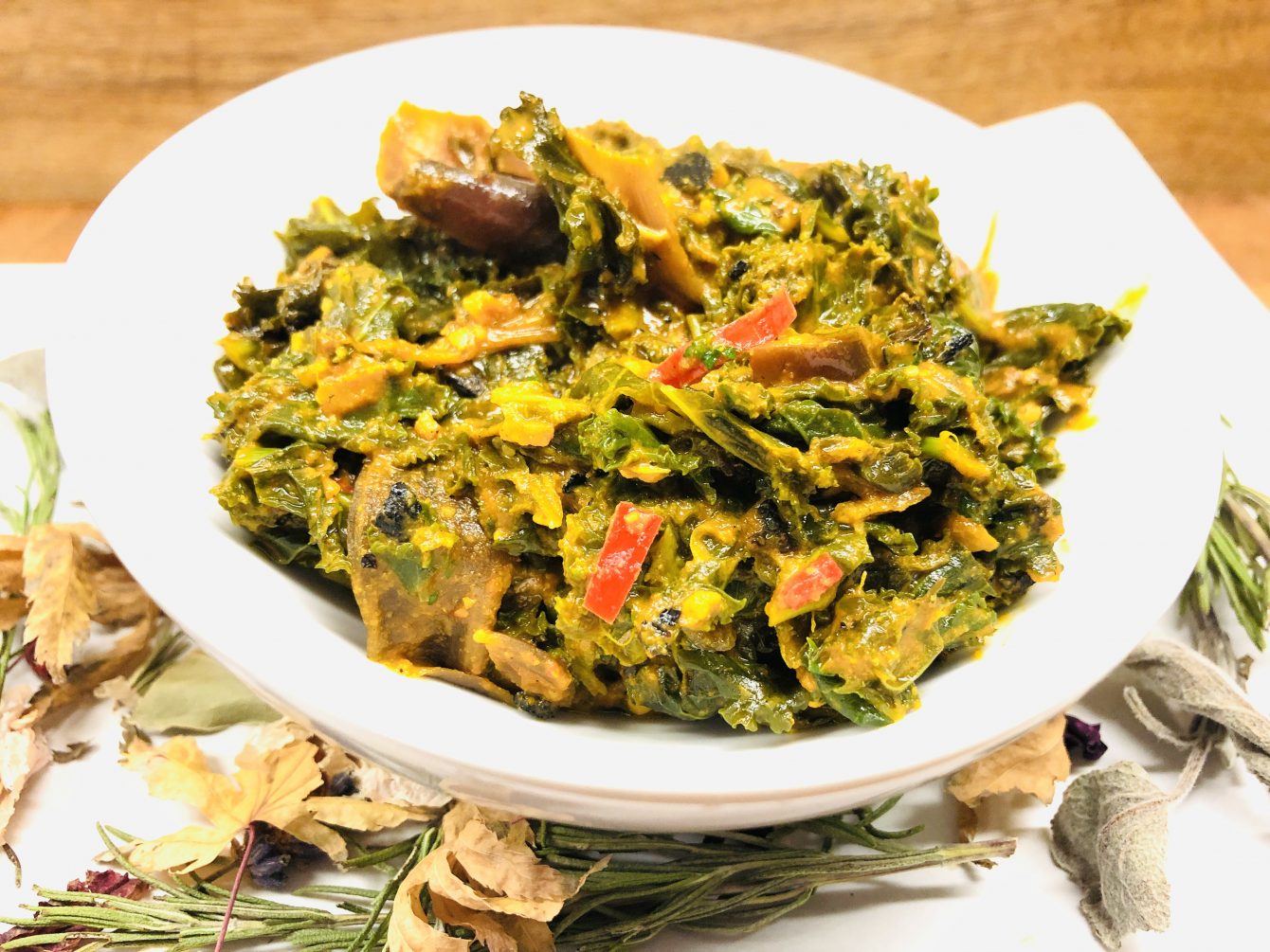 Das Grünkohl Curry passt perfekt zu Äthiopischen Linsen (Wot), Kartoffeln, Süßkartoffeln oder Injera Fladenbrot.