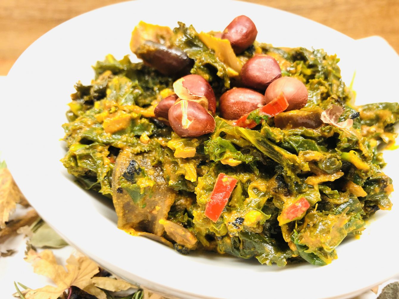 Dieses Erdnuss Curry mit Grünkohl stammt aus der afrikanischen Küche, besser gesagt aus der äthiopischen. Bei mir noch ergänzt mit meinen Chili Orangen.