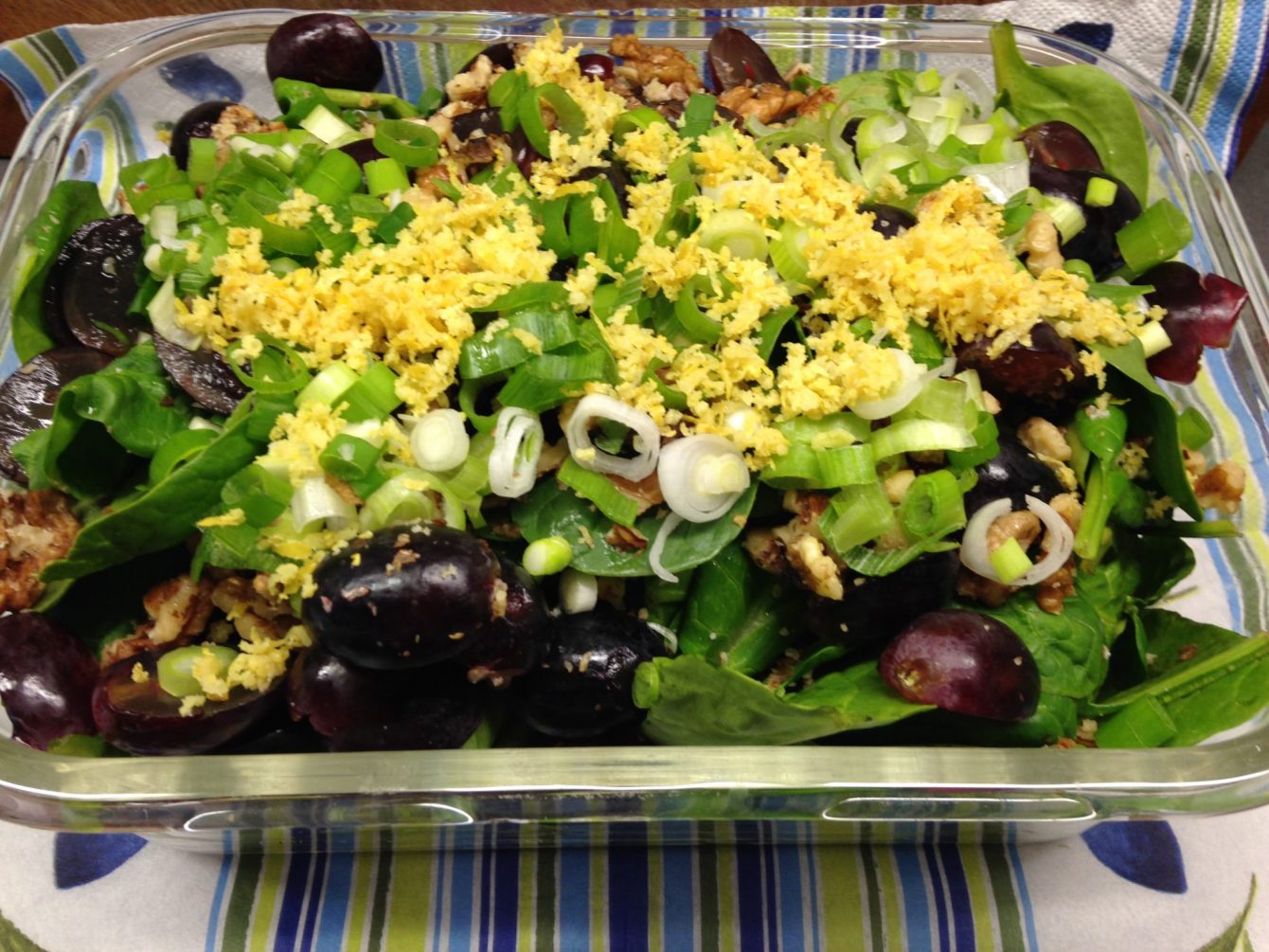 Der Spinat Salat mit Trauben, Walnüssen und Blaubeer Minze Dressing ist ein fruchtig leichter Salat.