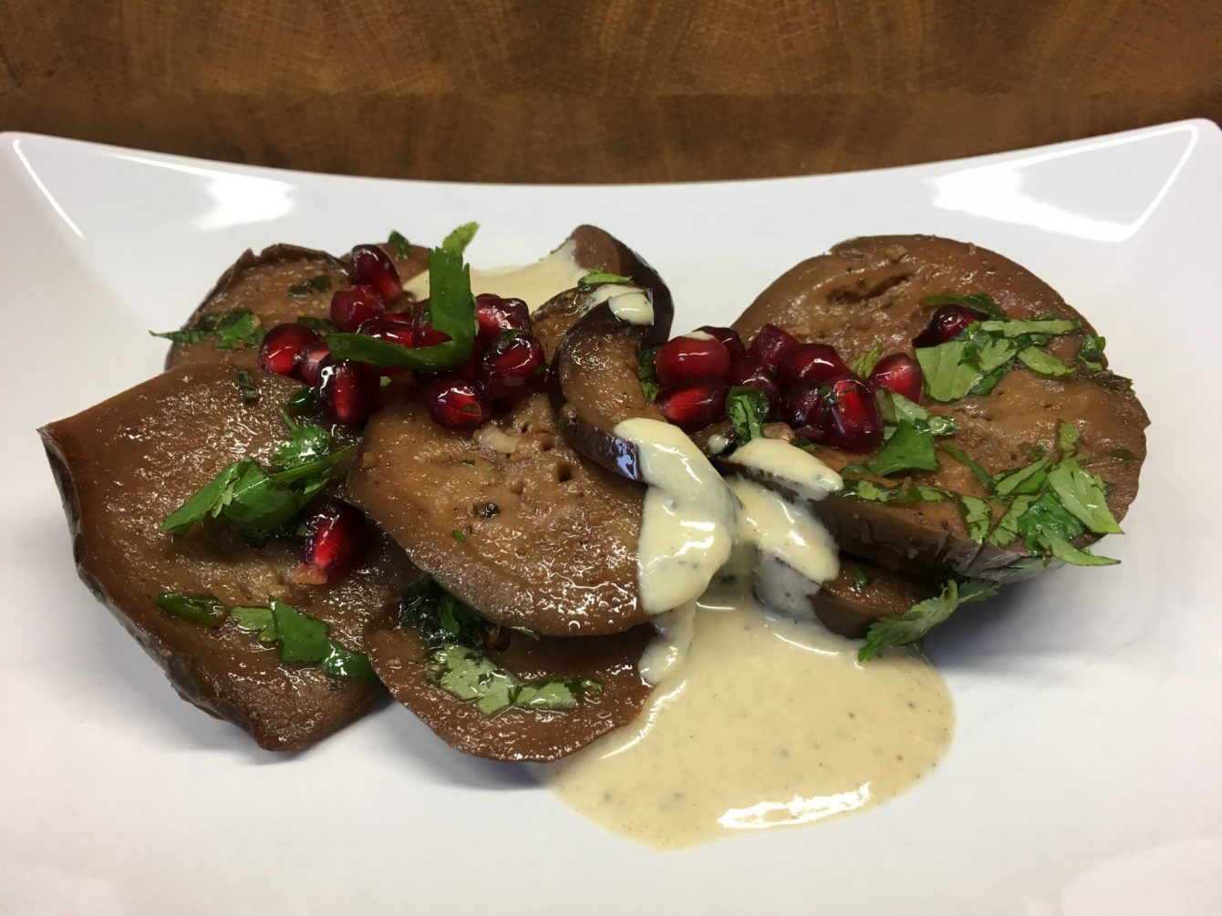 Das Rezept für die gebackenen Auberginen mit Granatapfel Koriander Marinade