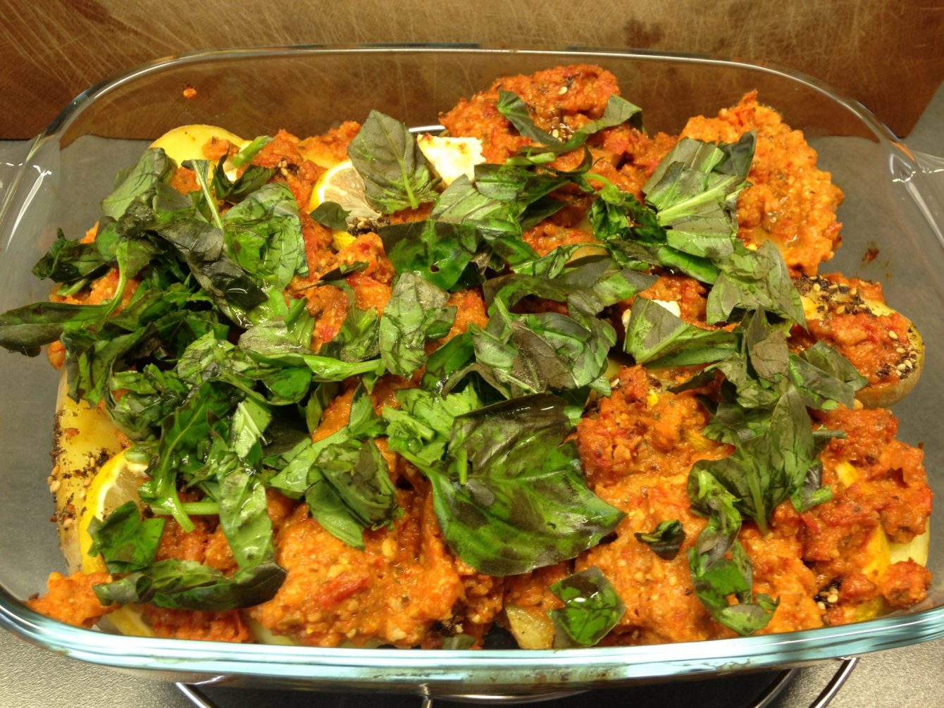 Gebackene Zitronen-Za’atar Kartoffeln mit Tomatenpesto