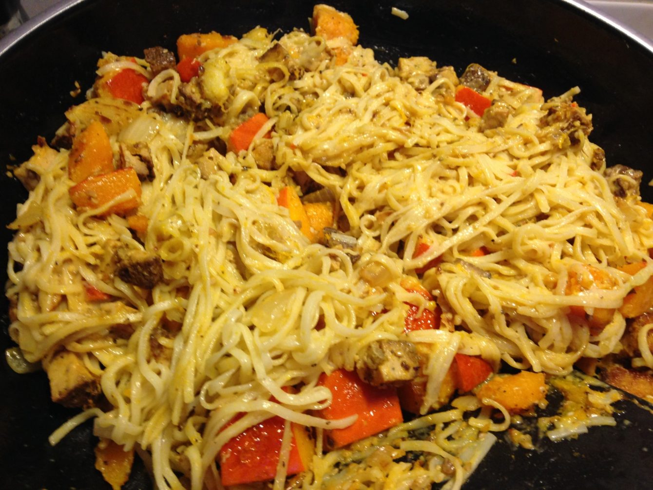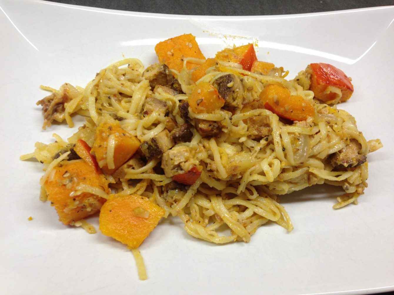 […] Gebratene Nudeln mit Kürbis, Tofu, Banane und Erdnuss Tamarinden Chili Sauce […]