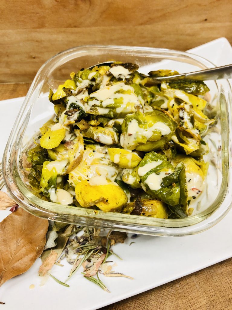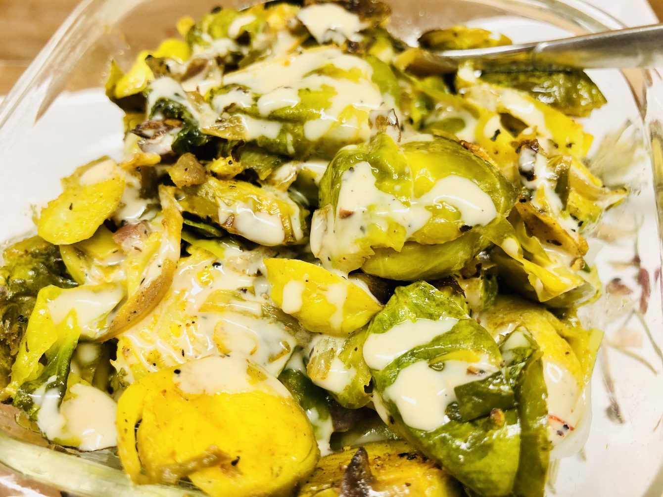 Gerösteter Rosenkohl mit Honig Tahini Sauce