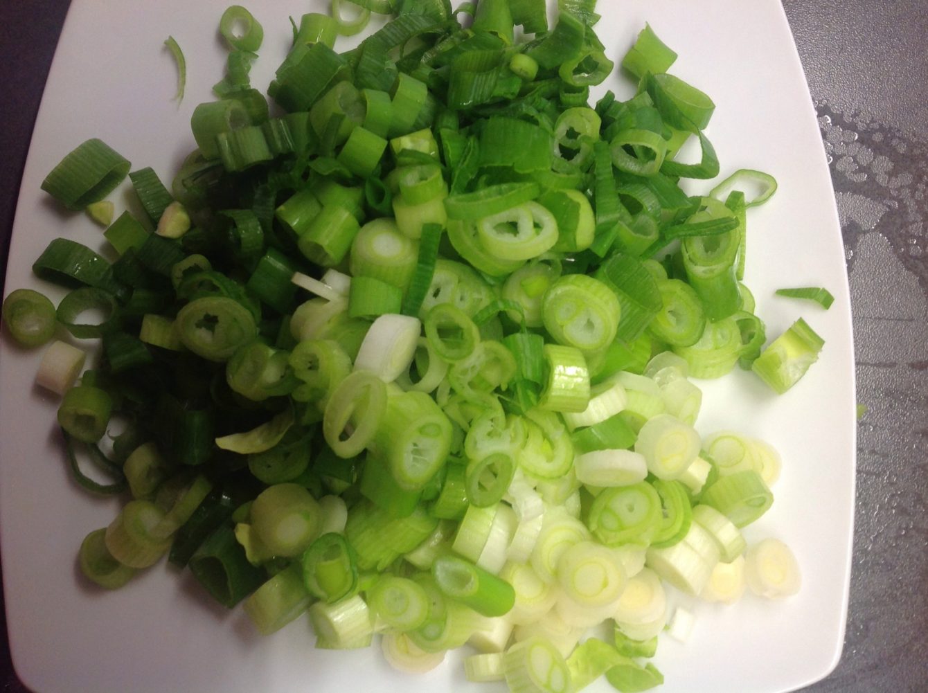 Kräuterseitlinge in Scheiben schneiden, Frühlingszwiebeln waschen und ebenfalls in feine Scheiben schneiden. Chilischote entkernen und fein hacken.
