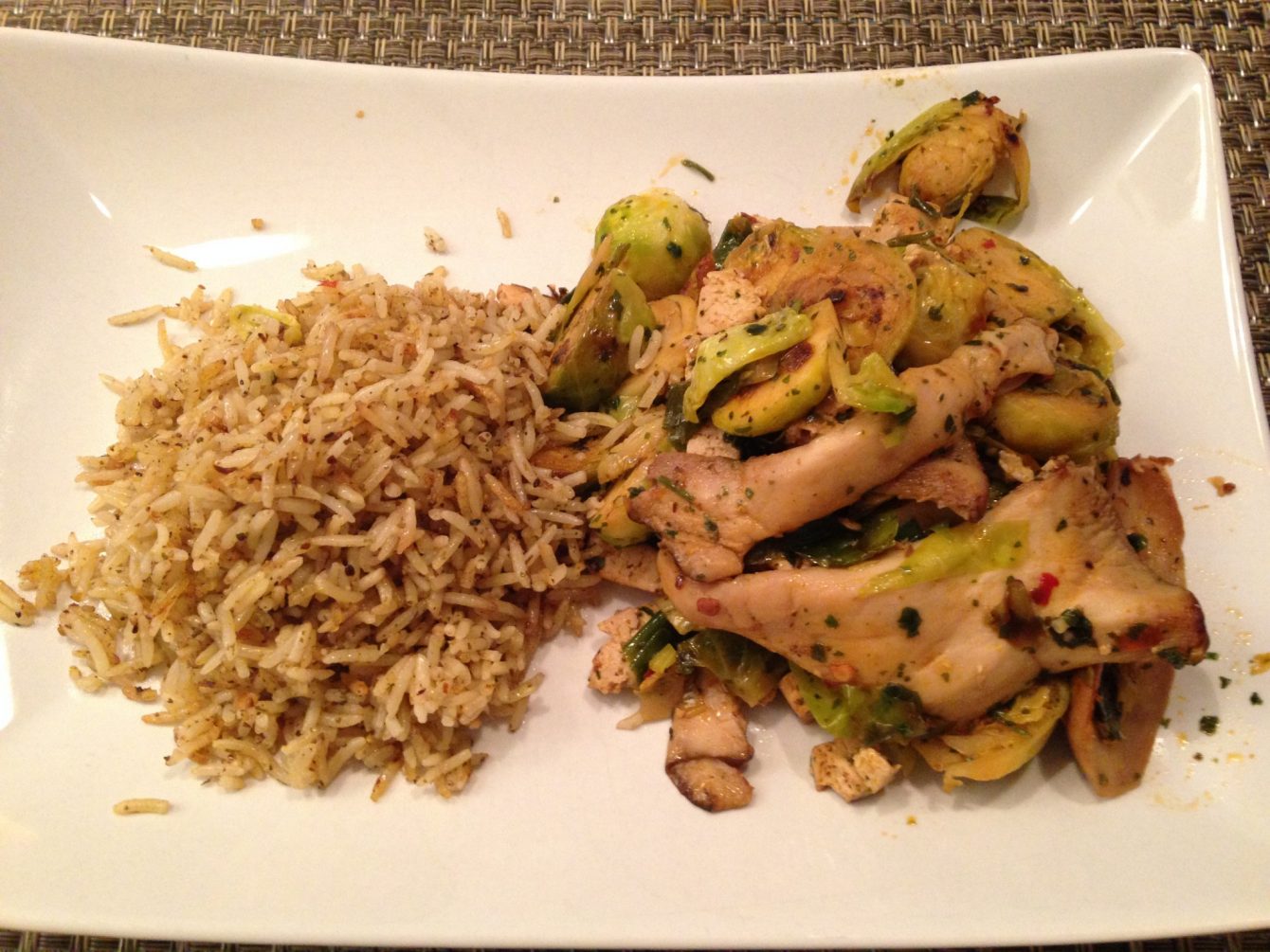 Ein Rezept inspiriert von meinem Lieblingskoch Yotam Ottolenghi. Eine kunstvolle Komposition aus Rosenkohl mit Tofu und Krauerseitlingen. Im Originalrezept sind es Shitake-Pilze, aber im Supermarkt gab es heute nur Kräuterseitlinge, aber die finde ich auch sehr lecker, also passt schon.