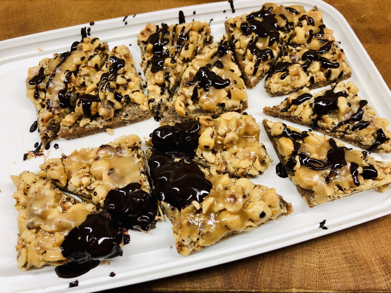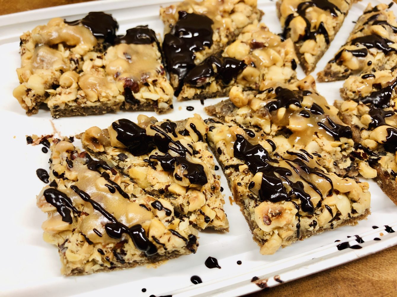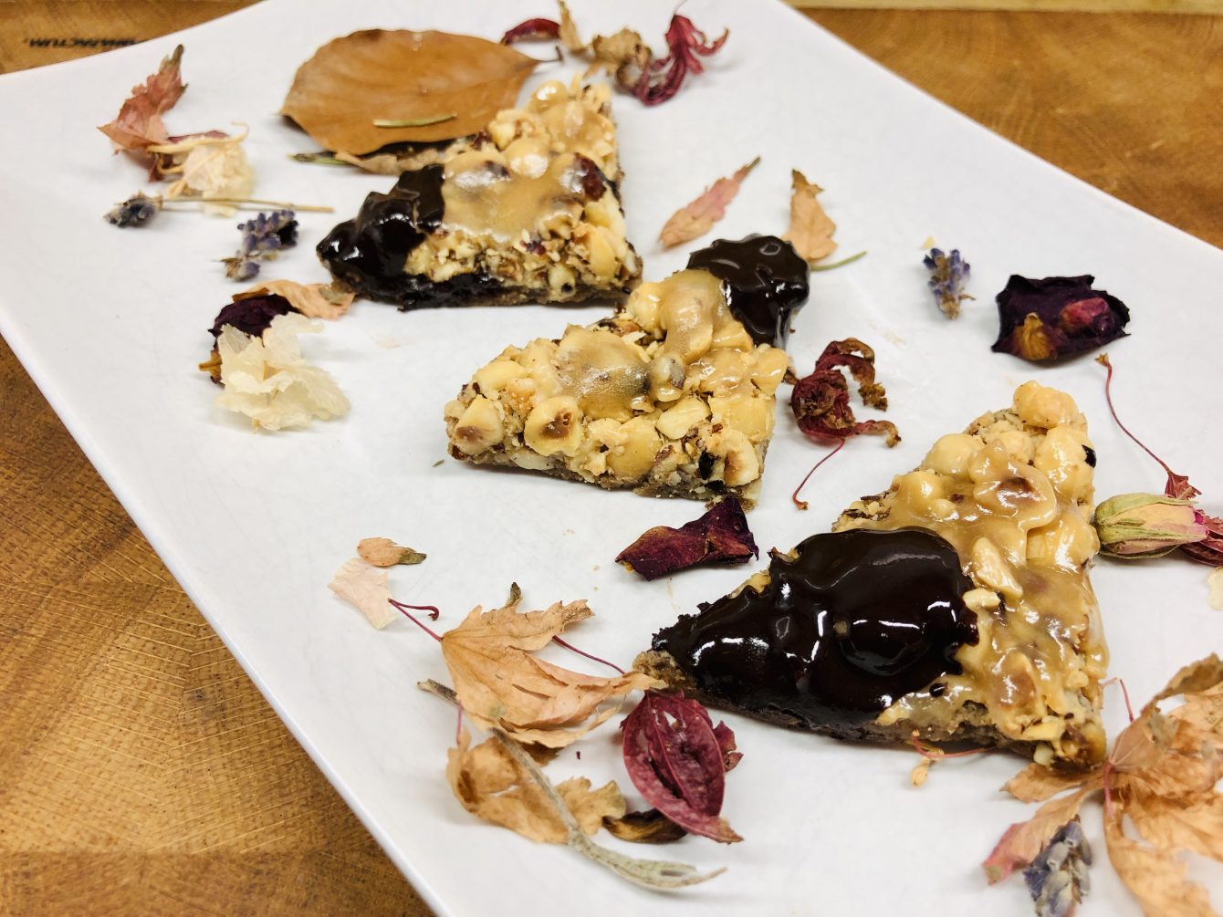 Buchweizen Nussecken mit Mandel Karamell und Haselnüssen