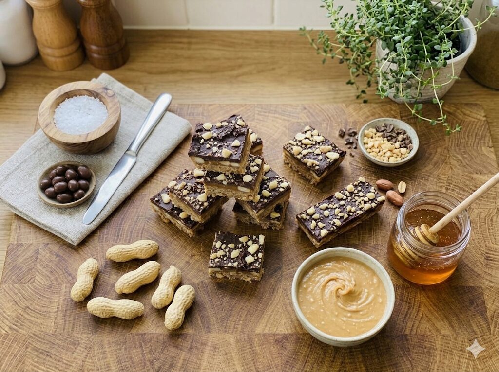 Indem du raffinierten Zucker, Maissirup und gehärtete Fette aus klassischen Schokoriegeln durch nährstoffreiche Erdnüsse, antioxidativen Honig, mineralhaltiges Meersalz und hochwertige dunkle Schokolade ersetzt, entsteht eine süße Option, die nicht nur gut schmeckt, sondern auch einen ernährungsphysiologischen Mehrwert bietet.