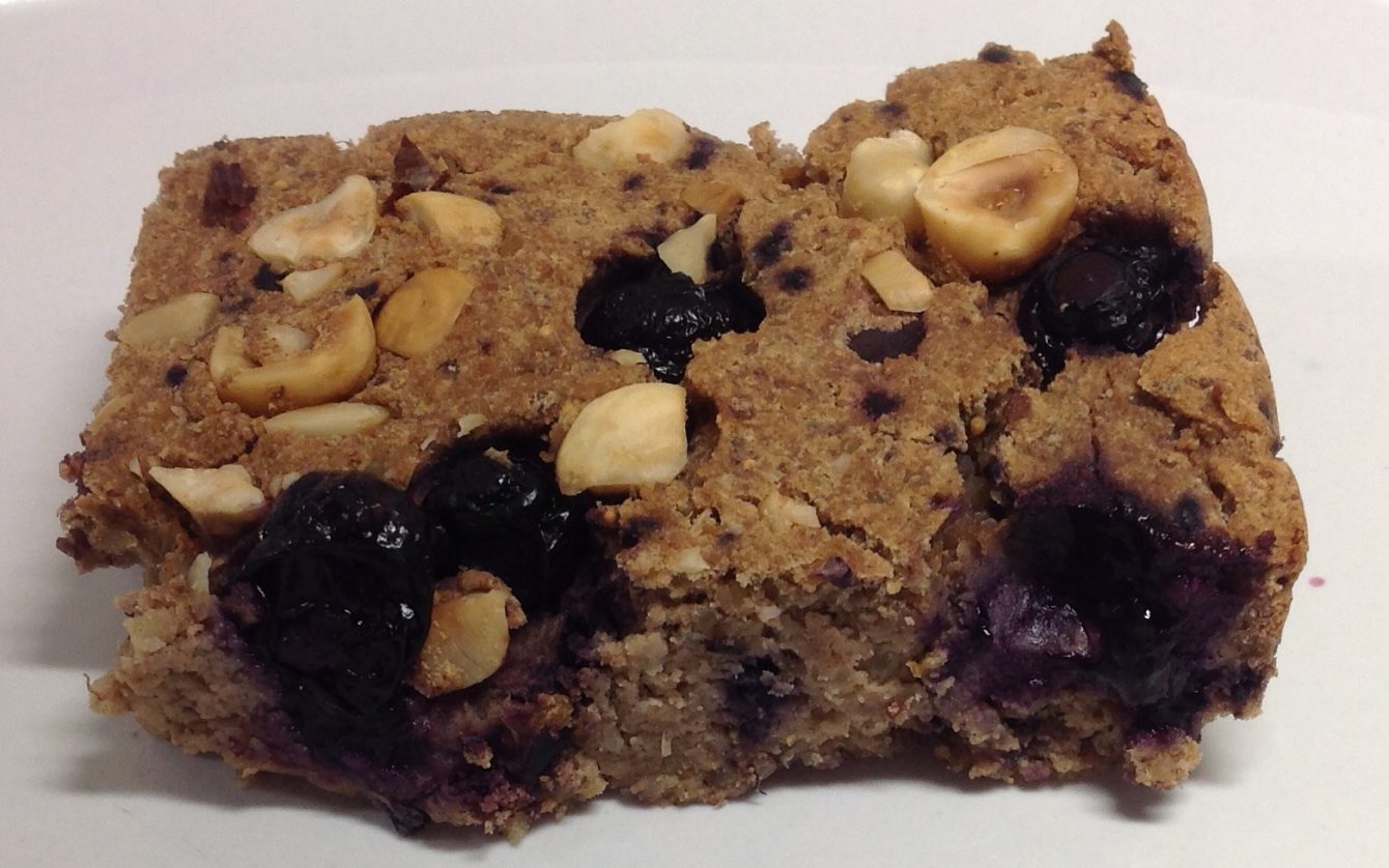 - Alle Zutaten, außer den Deko Nüsse und Blaubeeren in einem Mixer oder Foodprozessor zu einem glatten Teig verarbeiten.