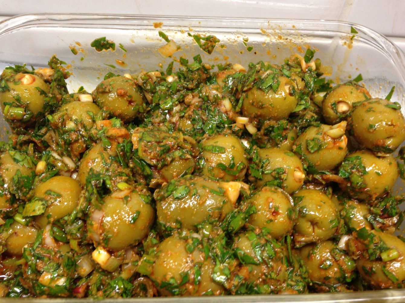 Zubereitung der Gewürzoliven mit Chermoula: