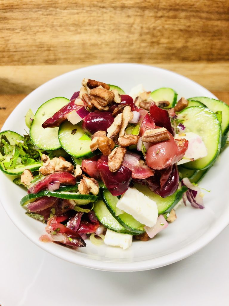 […] Gurkensalat mit Trauben, Zwiebeln und Feta […]