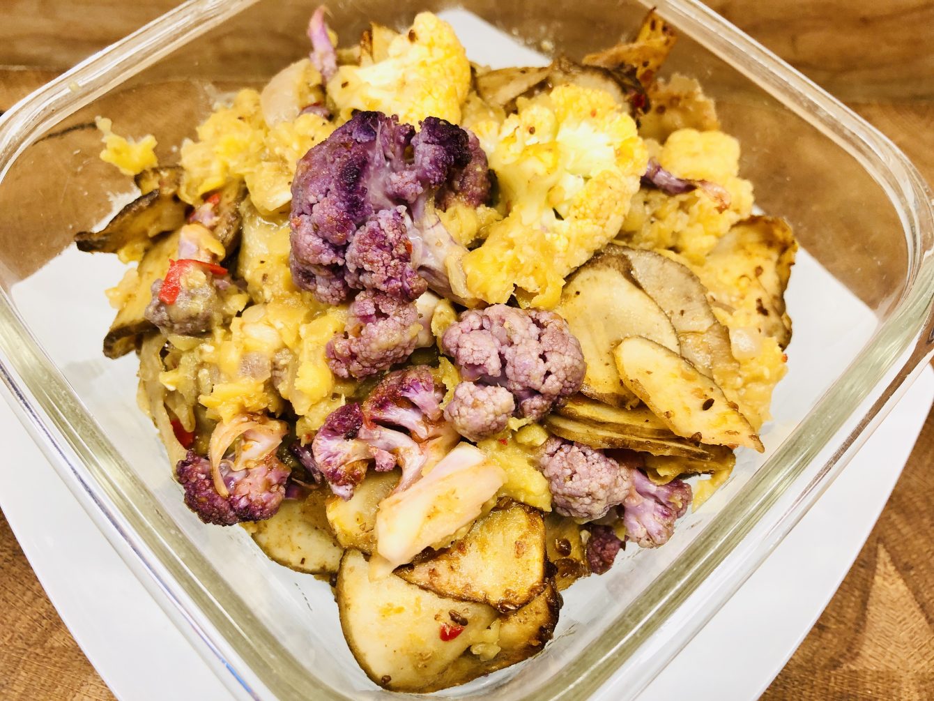 Das Rezept ist angelehnt an meinen gerösteten Blumenkohl mit Rosen Harissa und hier noch etwas erweitert und zusammen mit Topinambur und roten Linsen zu einem Auflauf komponiert. Statt der Topinambur könnt ihr auch Kartoffeln nehmen oder anderes Gemüse oder auch die ganz weglassen. Statt der roten Linsen könnt Ihr auch gelbe, grüne, braune oder schwarze Linsen nehmen und die Kochzeit entsprechend anpassen. Das Rezept ist sehr variabel.