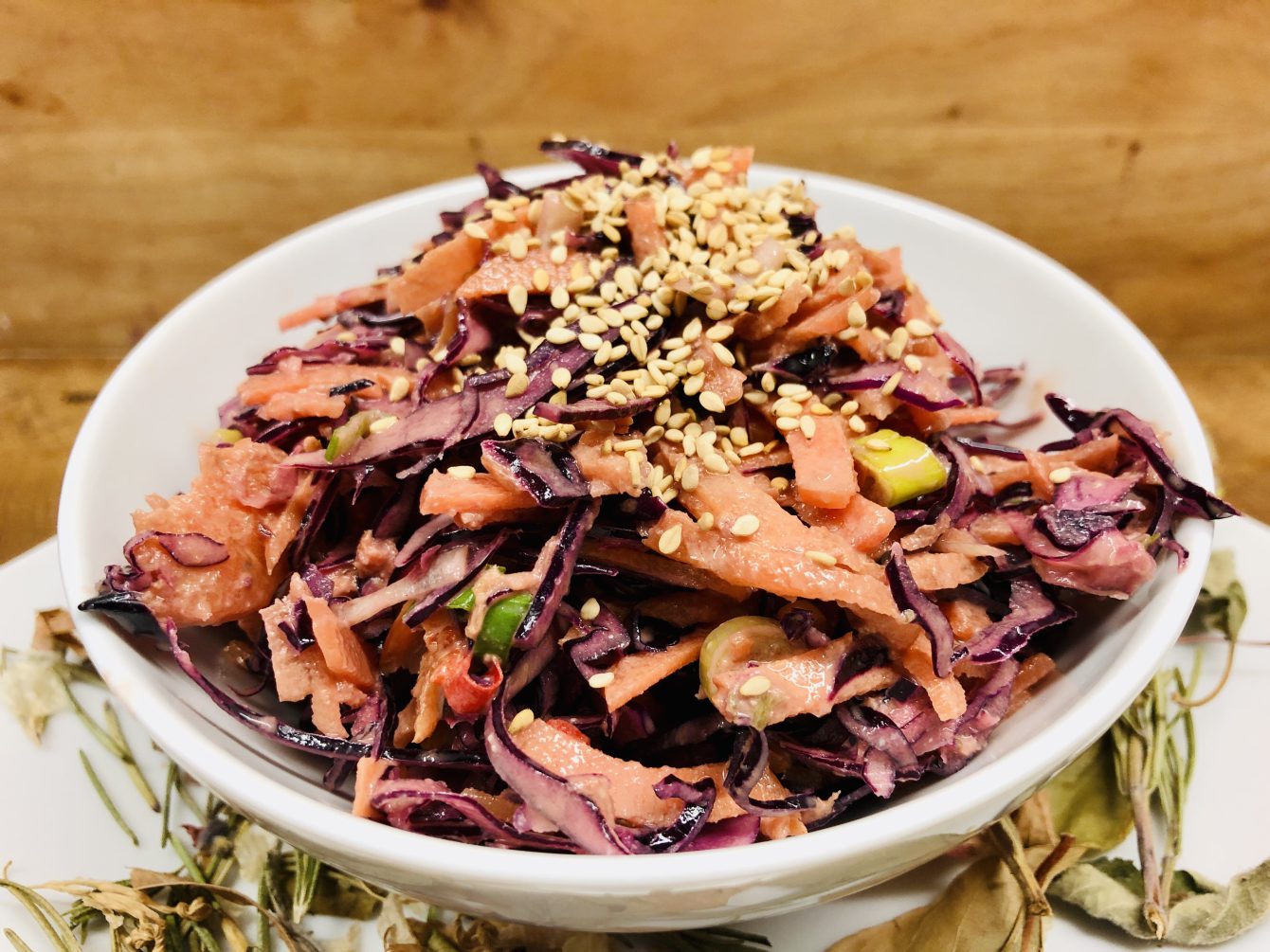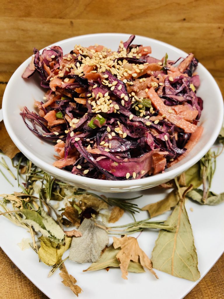 - Krautsalat aus Rotkohl und Ringel Bete mit Avocado Hanf Dressing