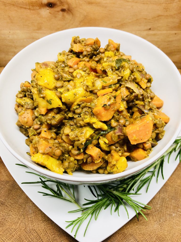 Das Linsen Curry aus Berglinsen mit Kartoffeln, Süßkartoffel und Karotten ist ein einfaches und wärmendes Gericht – ideal für die kalte Herbst- und Winterzeit.