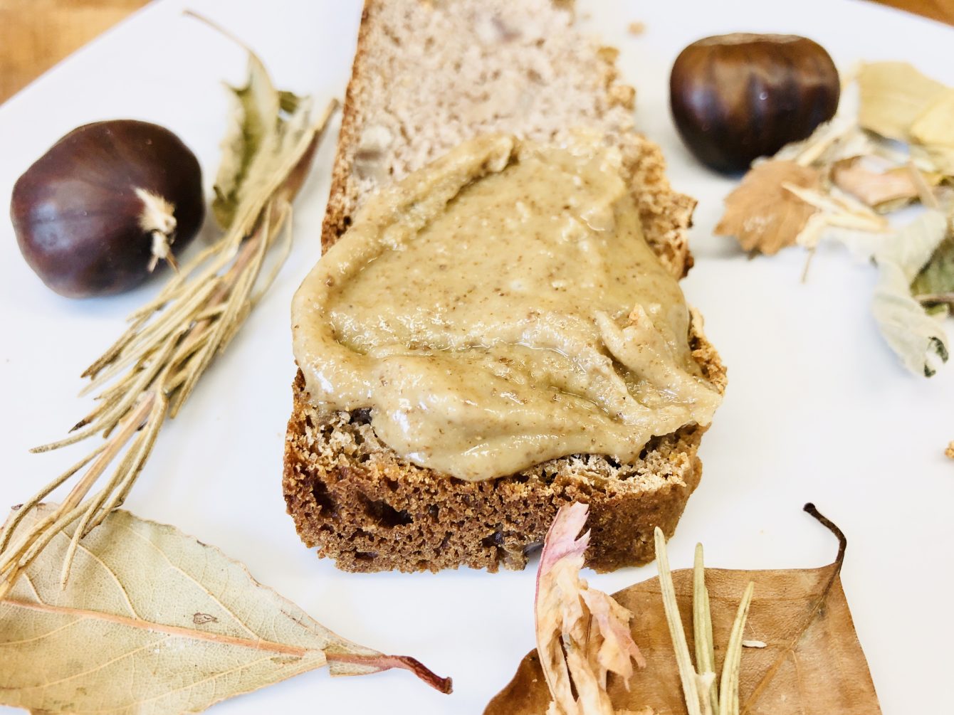 Dieses Brot aus Kastanienmehl, Maronen und Walnüssen kommt ohne klassisches Mehl aus und ist vegan und glutenfrei.