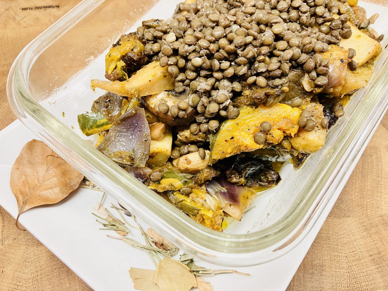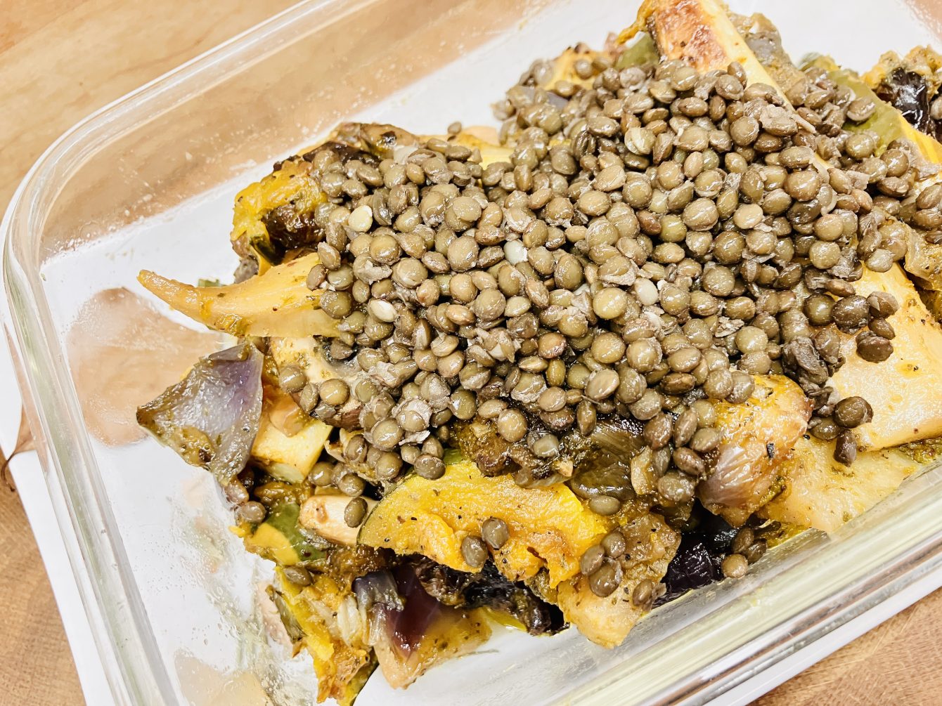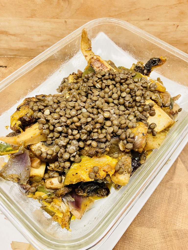 - Während die Linsen kochen und das Gemüse rösten.