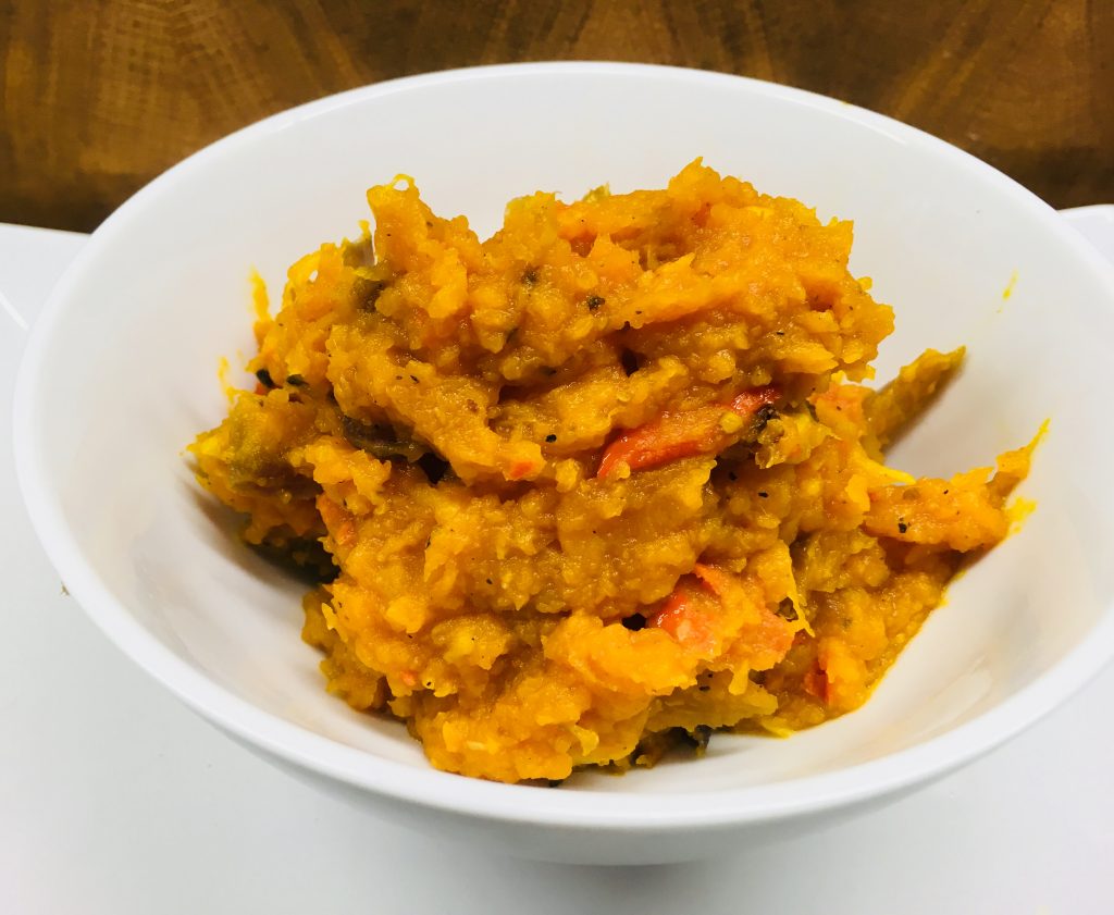 Das Kürbis Püree mit Miso, Datteln, Chili und Zimt ist süß, scharf und würzig und ergibt eine fantastische Beilage für den weihnachtlichen Festschmaus oder auch eine tolle Füllung für eine Kürbistarte oder Quiche.