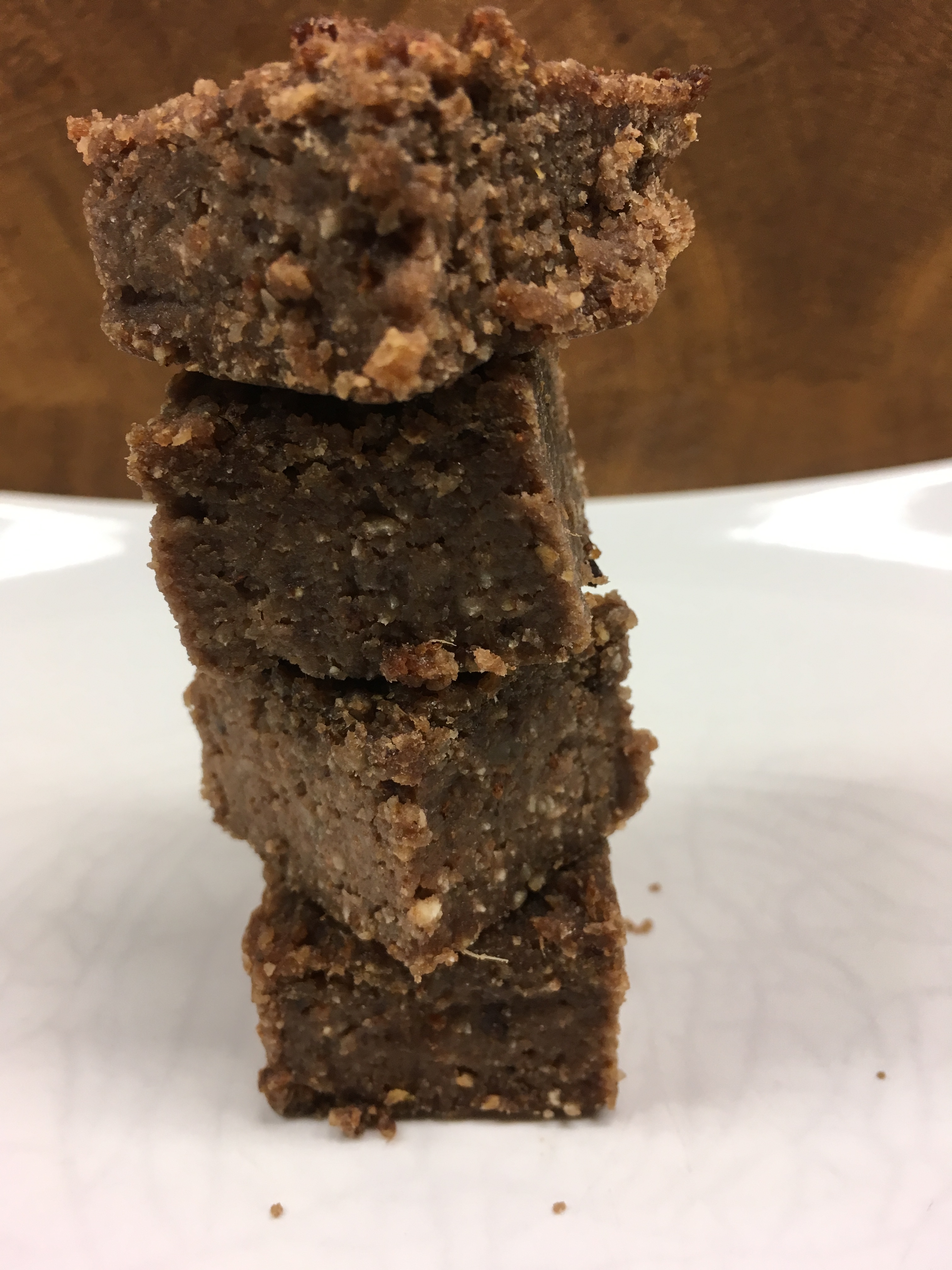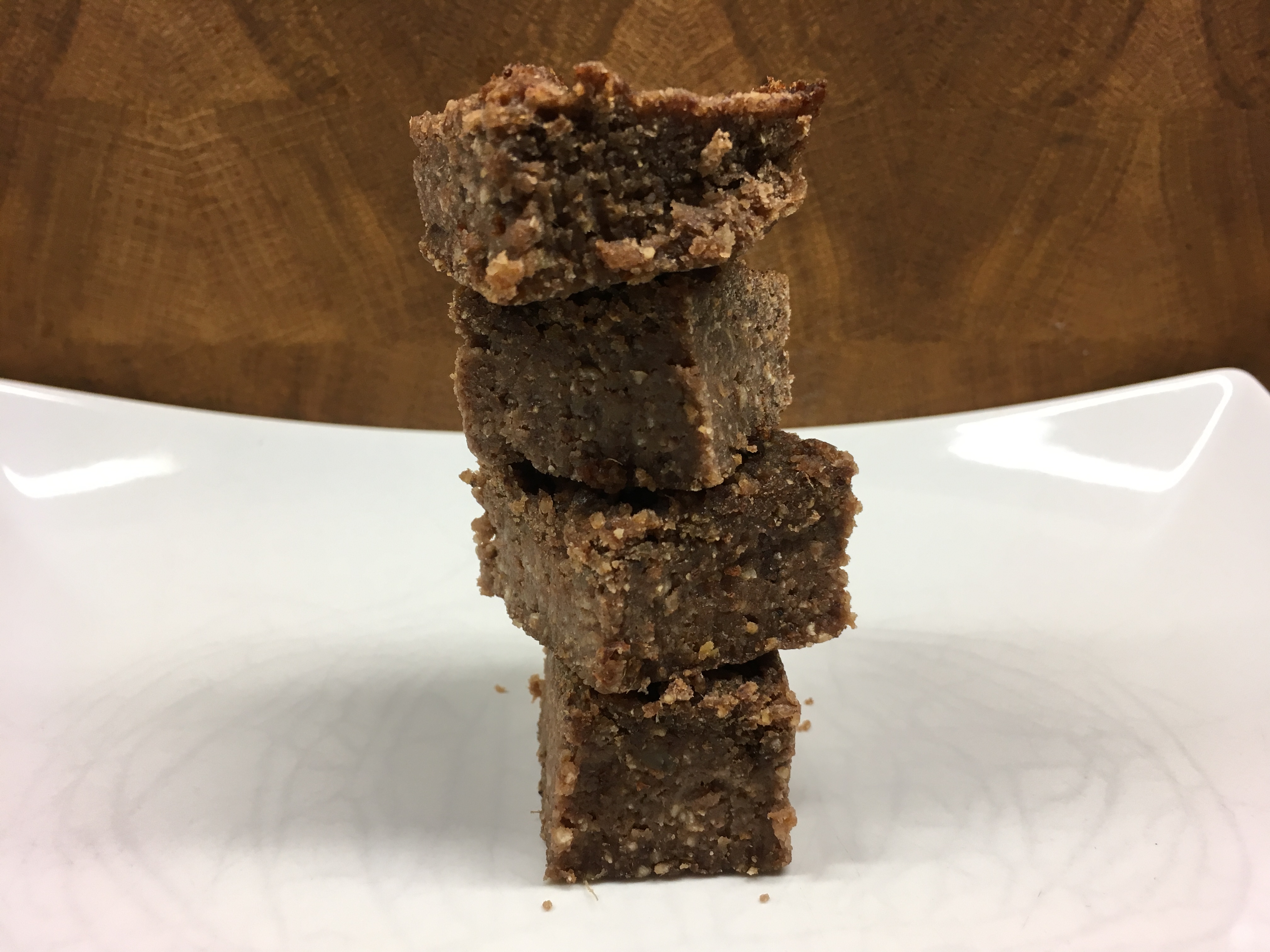 1. Alle Zutaten in einem Mixer oder Foodprozessor zu einem glatten Teig verarbeiten. Wenn der Teig zu feucht ist, könnt ihr noch etwas mehr Mandelmehl oder Walnüsse ergänzen. Wenn der Steig zu trocken ist, nochetwas mehr Mandelmus.