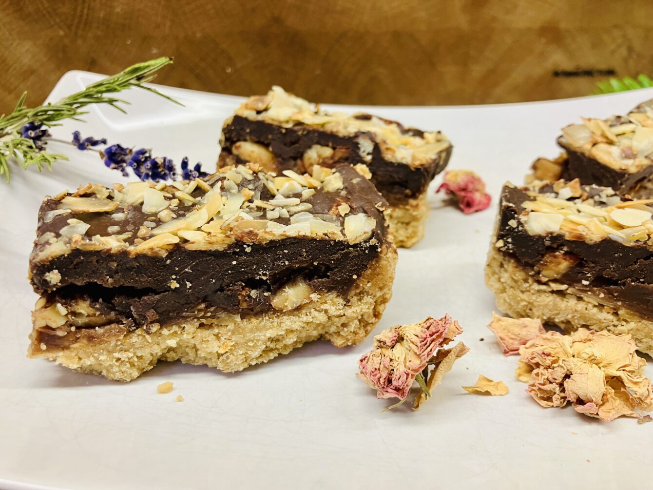 Almond Caramel Shortbread with Jaggery Crunch & Chocolate Ganache: A Decadent Yet Wholesome Delight