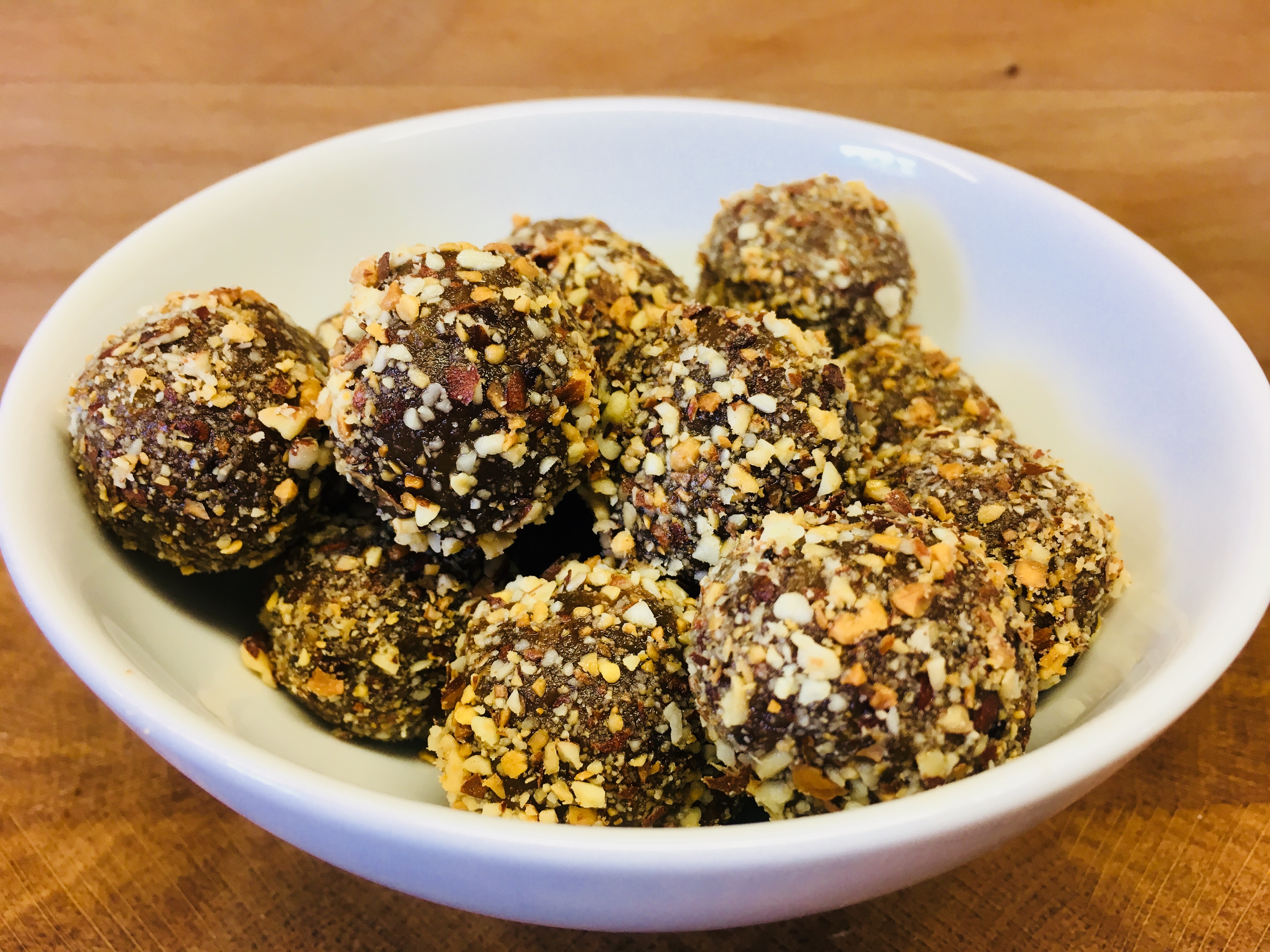 - Wenn Ihr keinen frischen Orangenzesten verwendet, würde ich noch einen Schuss Orangensaft dazugeben und einen 1/4 TL getrocknete Orangenschale zu den gehackten Mandeln zum Wälzen dazugeben. Das verstärkt den Orangengeschmack.