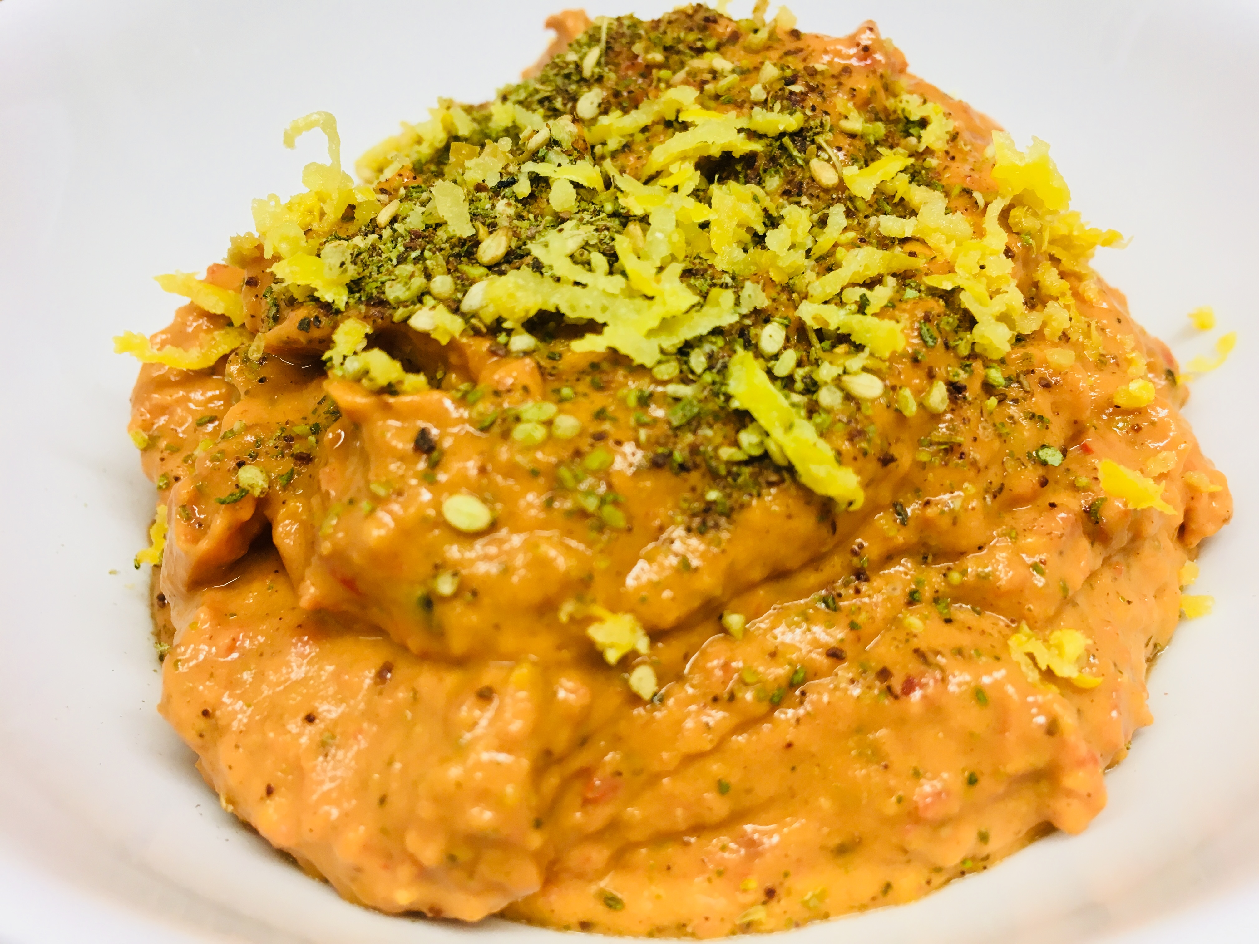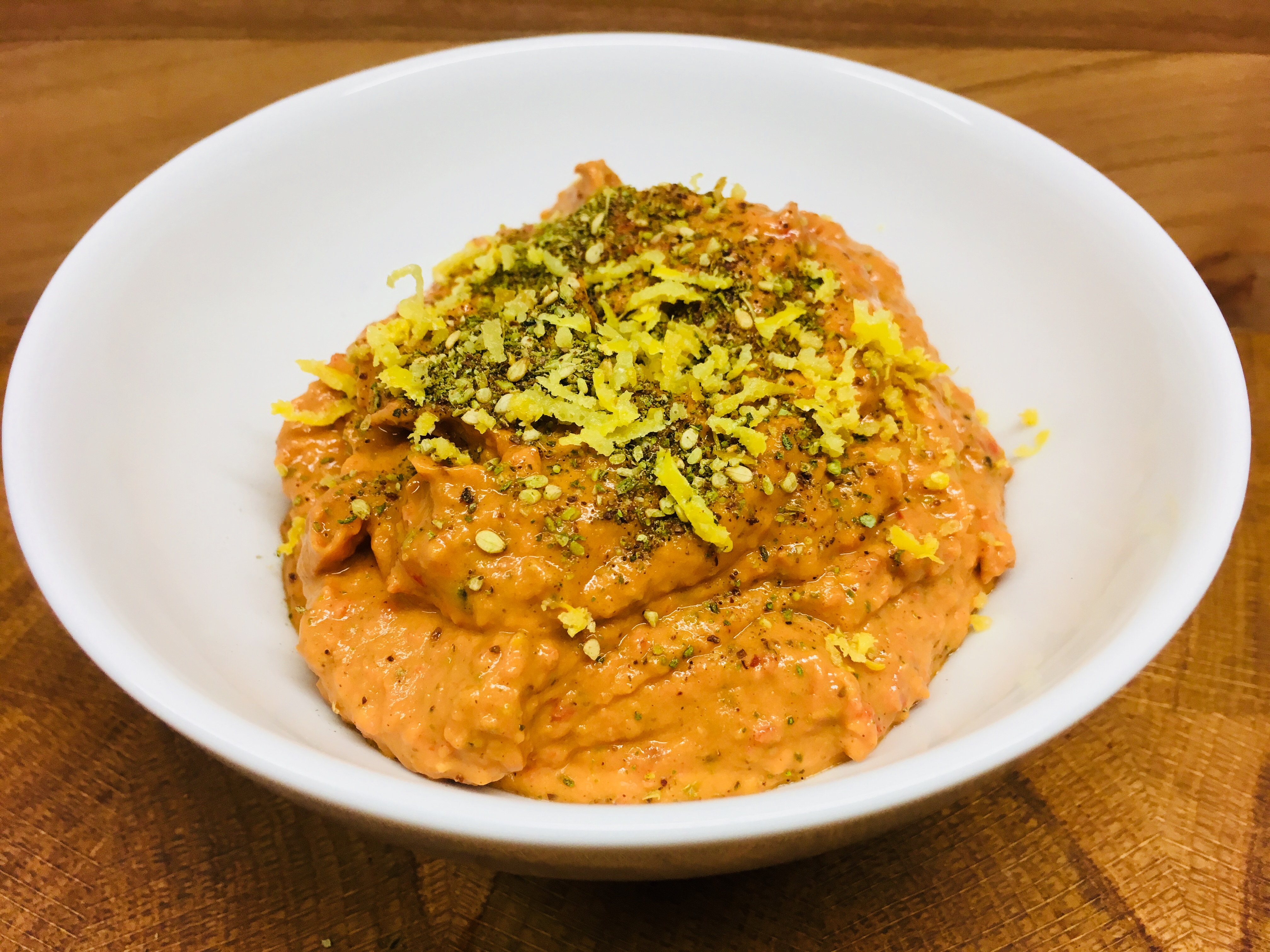Das Rezept für den Paprika Avocado Tahini Dip mit Minze und Za‘atar
