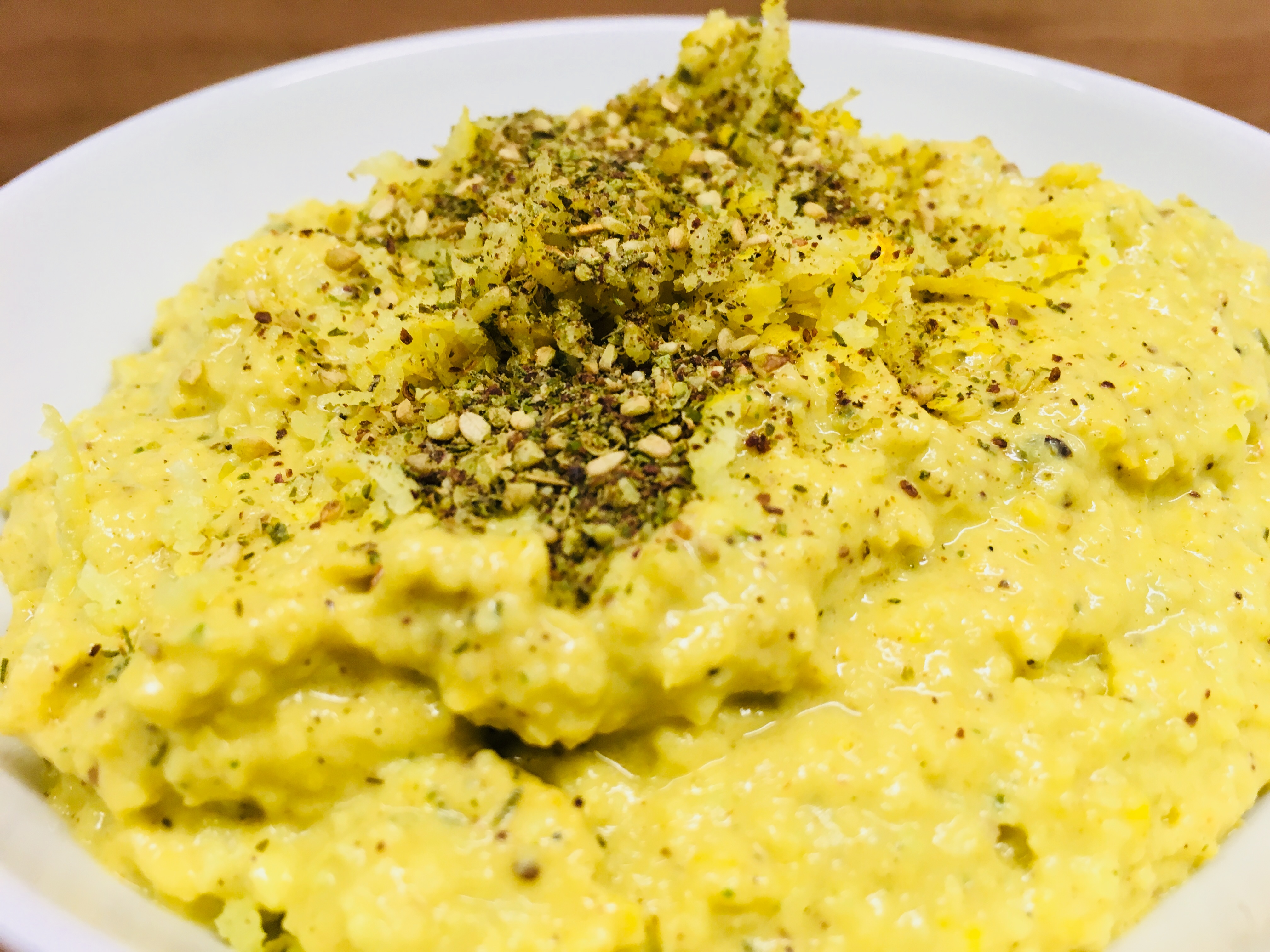 - Die Creme in ein Schälchen füllen und mit Za‘atar und gehackter Minze überstreuen.