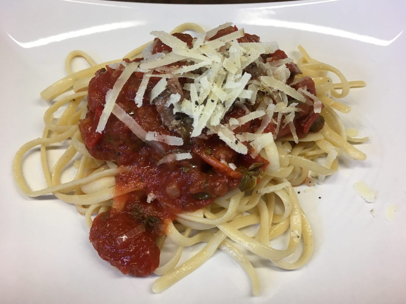[…] Puttanesca Sauce mit Tomaten, Oliven, Kapern und Peperoni […]