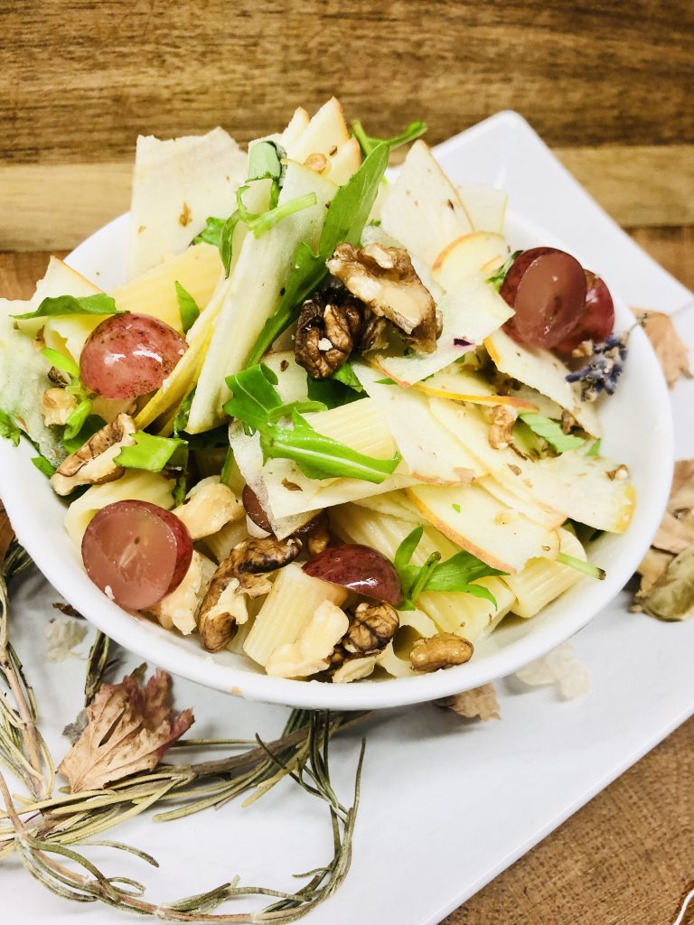 Das Rezept für den Pasta Salat mit Apfel und Trauben