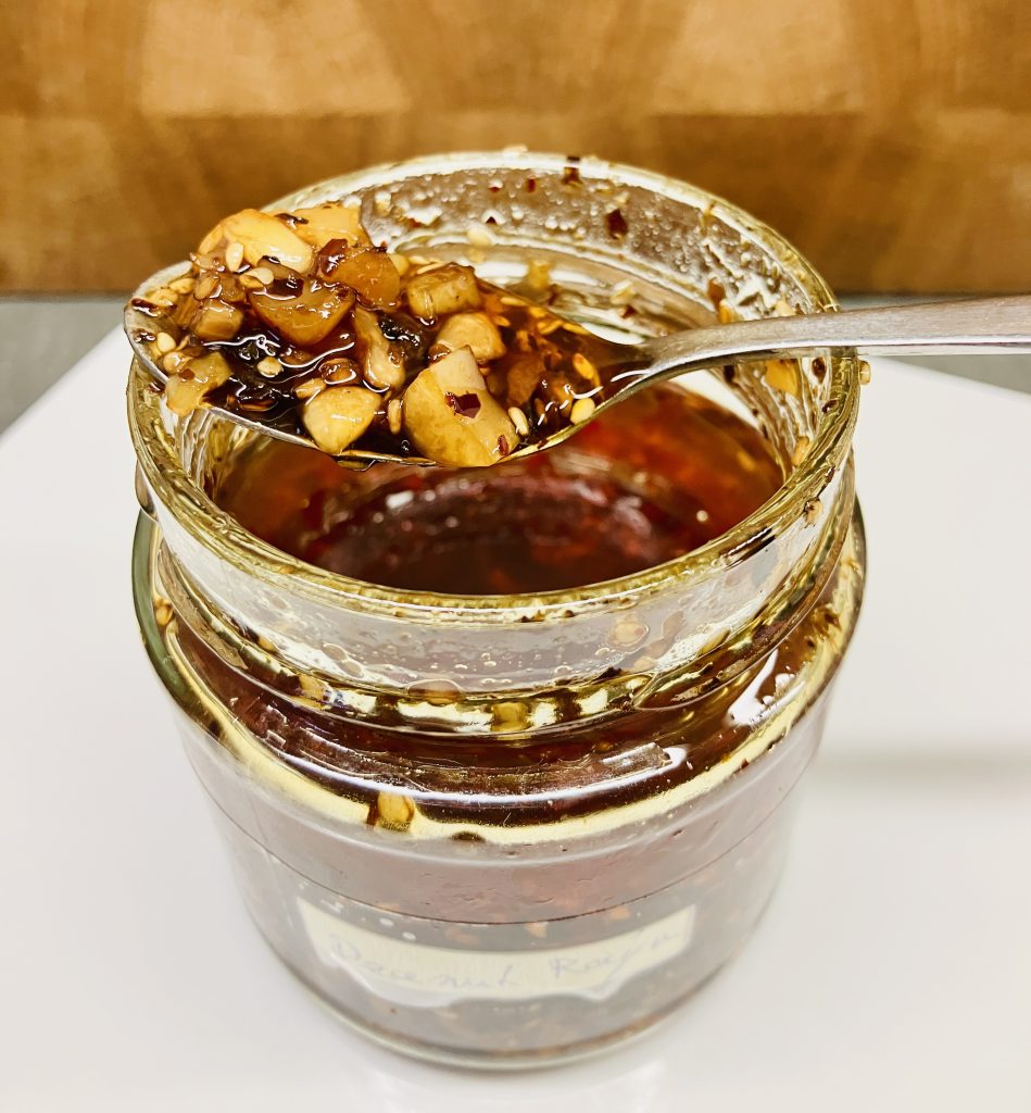 Erdnuss-Rayu ist ein japanisches Chiliöl, das in den letzten Jahren weltweit an Popularität gewonnen hat. Rayu ist eine faszinierende japanische Adaption des traditionellen chinesischen Chiliöls. Traditionell ist es aus Sesamöl, Chilischoten und Knoblauch hergestellt und verleiht Rayu jedem Gericht eine würzige Note. Es symbolisiert den kulturellen und kulinarischen Austausch zwischen diesen beiden großartigen Küchen.