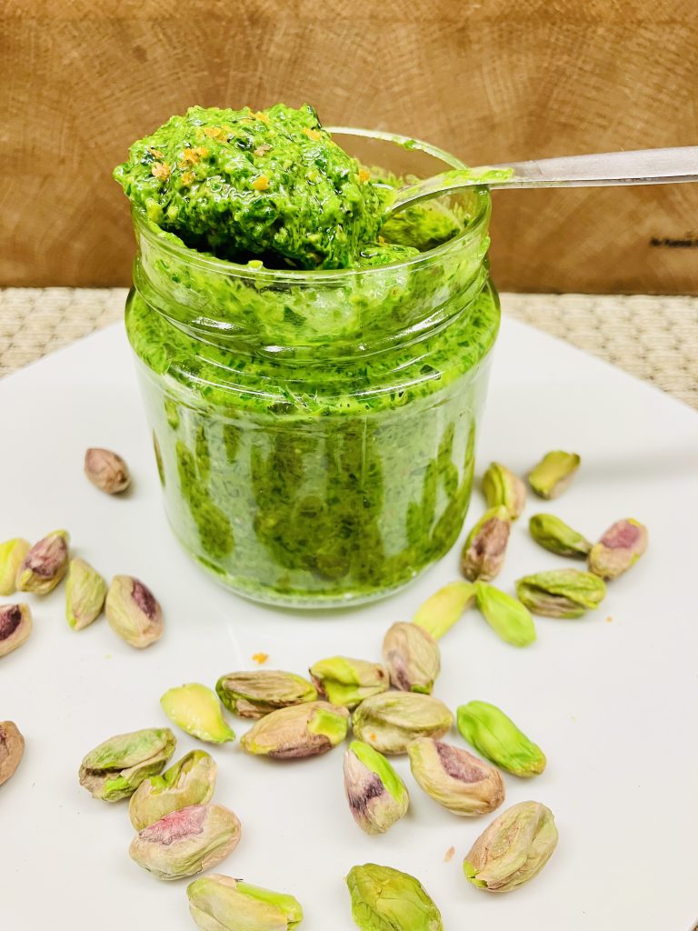 Heute geht es um eine weitere besondere Variation vorstellen – Bärlauch-Pesto mit Pistazien. Die nussig-süßlichen Pistazien verleihen dem wilden Knoblauchgeschmack eine raffinierte Note und sorgen für eine wunderschöne smaragdgrüne Farbe.