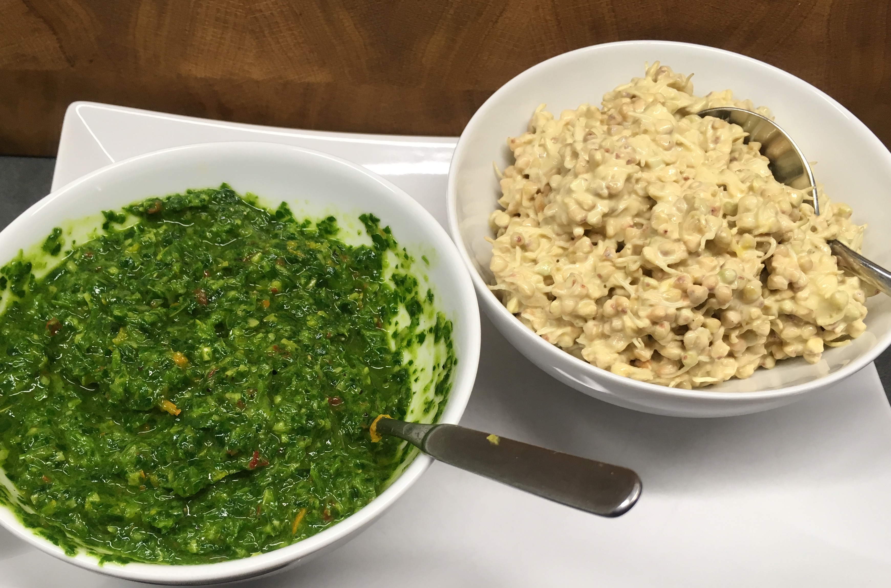 Zubereitung des Rawsotto aus Buchweizen Sprossen mit Safran Tahini Dressing und Gremolata