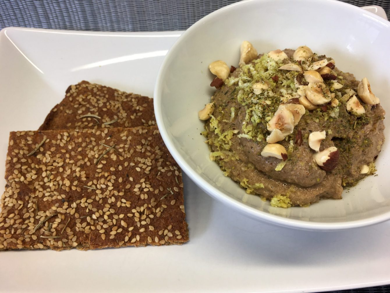 Einen besonderen Kick erhält dieser Hummus durch das Haselnuss Mus, das den Hummus besonders nussigen macht und das Za’atar, das diesem Hummus eine besondere Aromanote verleiht.