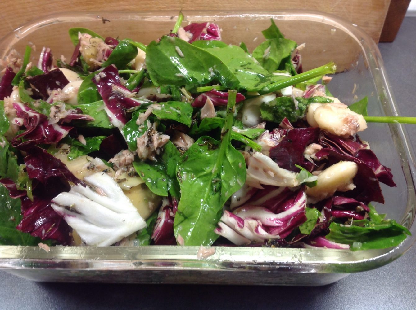 Salat kurz vor dem Verzehr mit dem Dressing vermischen.
